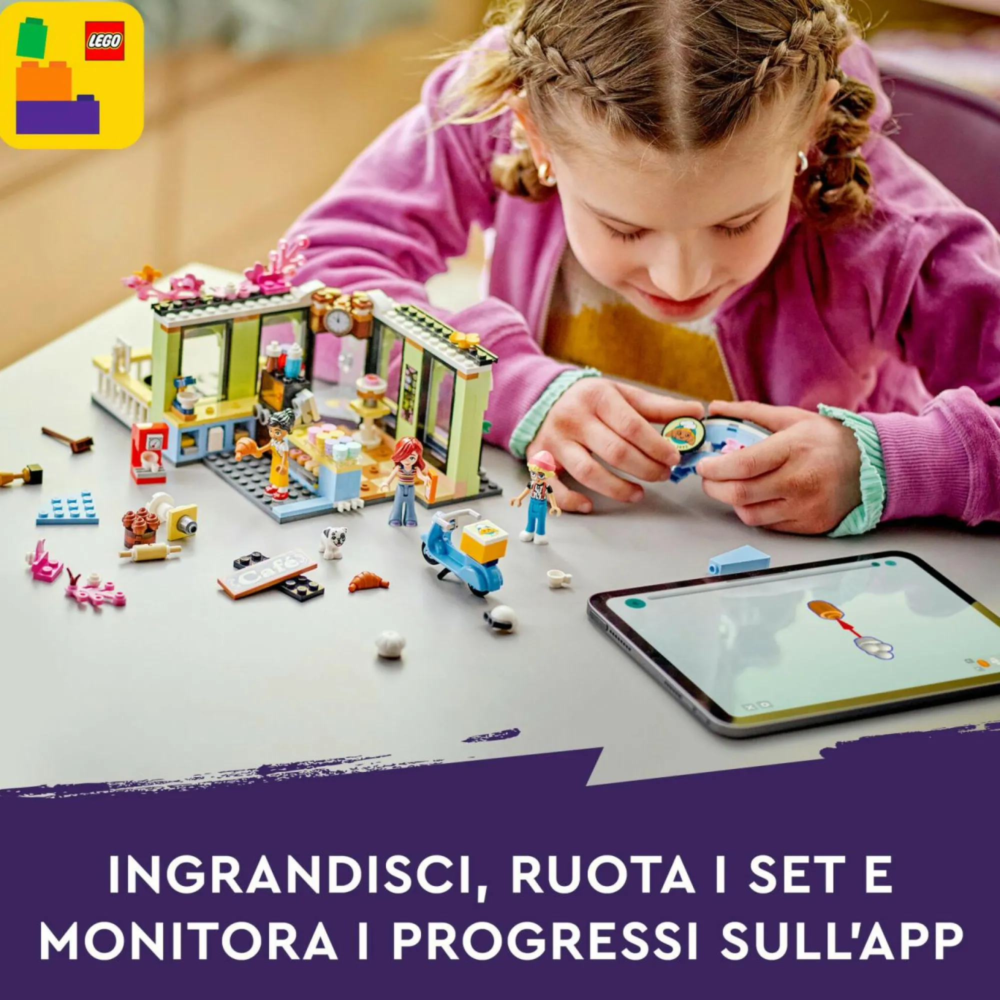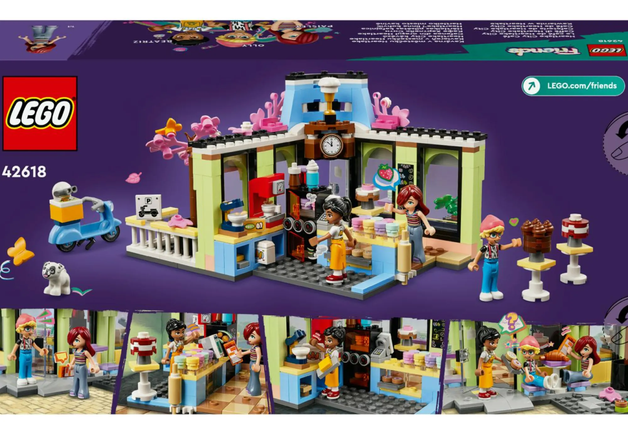 Include i personaggi Paisley e Olly e un cane LEGO Friends: i giovani costruttori possono divertirsi in compagnia delle mini bamboline incluse, dando vita a storie con Paisley e Olly che visitano il loro caffè giocattolo preferito