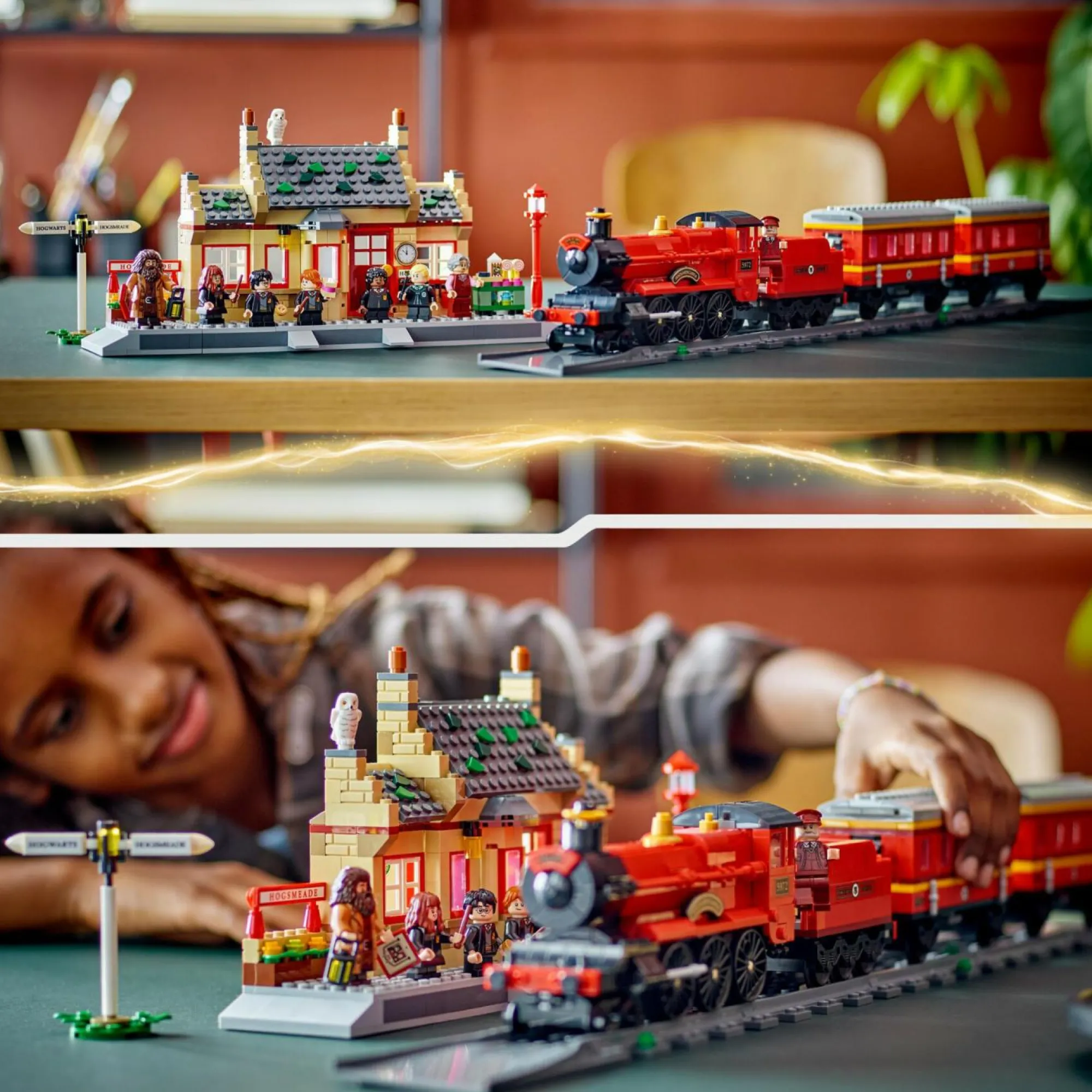 Ricrea la memorabile scena in cui Hagrid accoglie gli studenti del primo anno alla stazione di Hogsmeade, con questo set che contiene il treno giocattolo LEGO Harry Potter Hogwarts Express