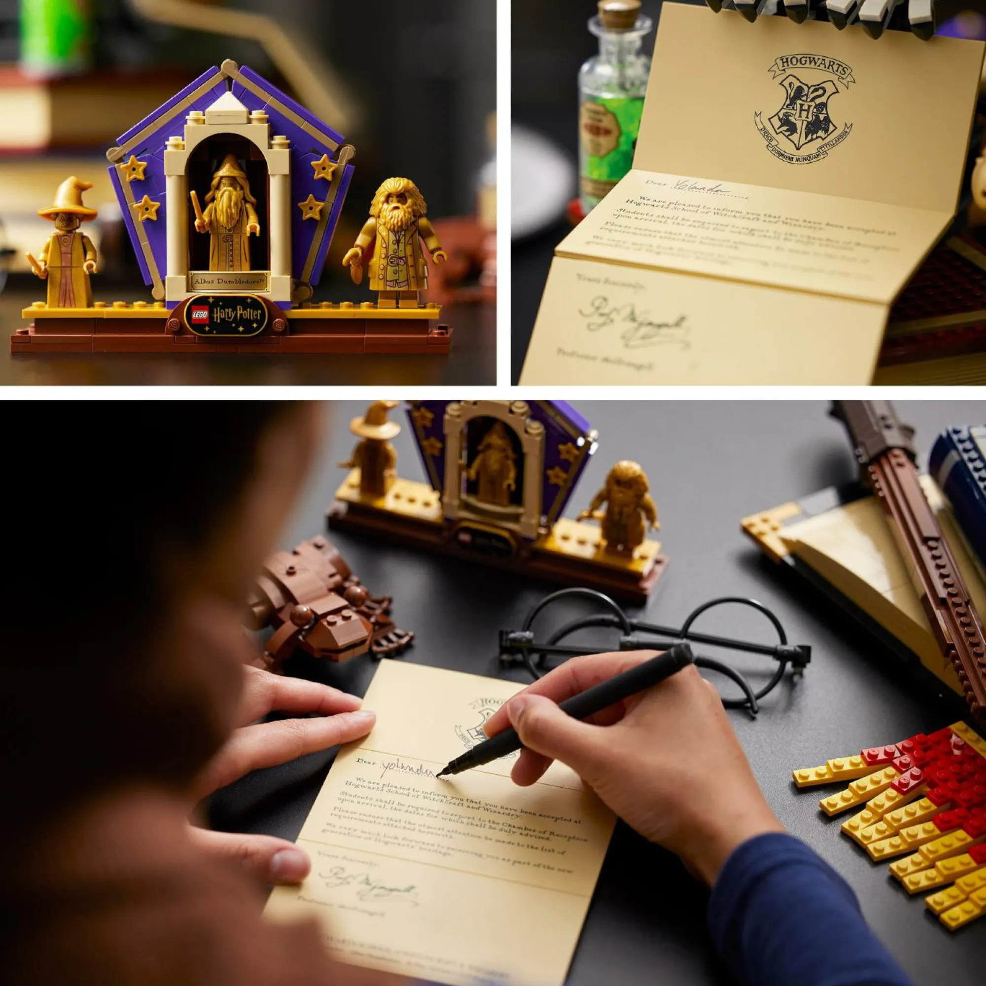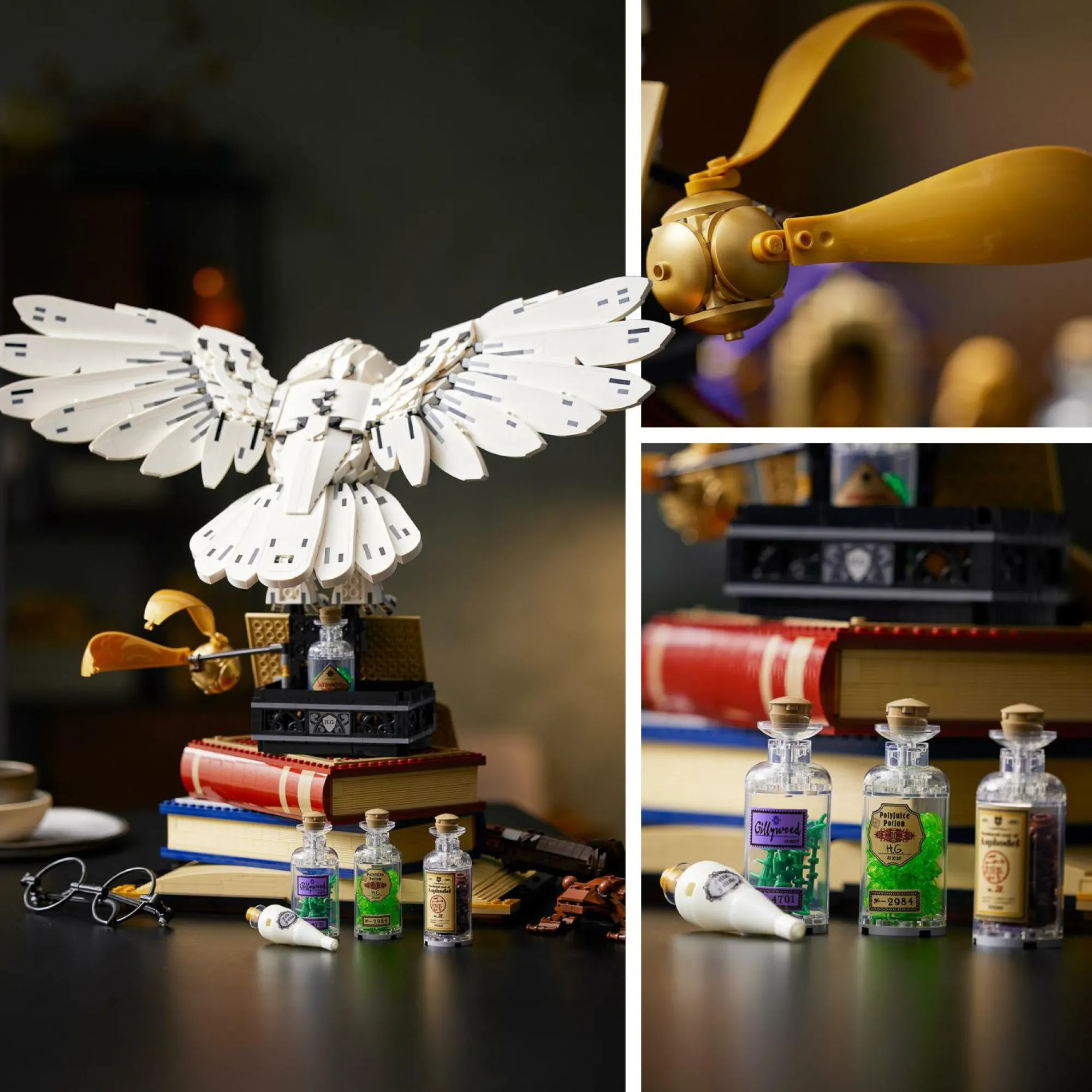 Il modellino include alcuni manufatti iconici: la bacchetta e gli occhiali di Harry, un vassoio di pozioni, il diario di Tom Riddle, il Boccino d’Oro e una sciarpa di Hogwarts