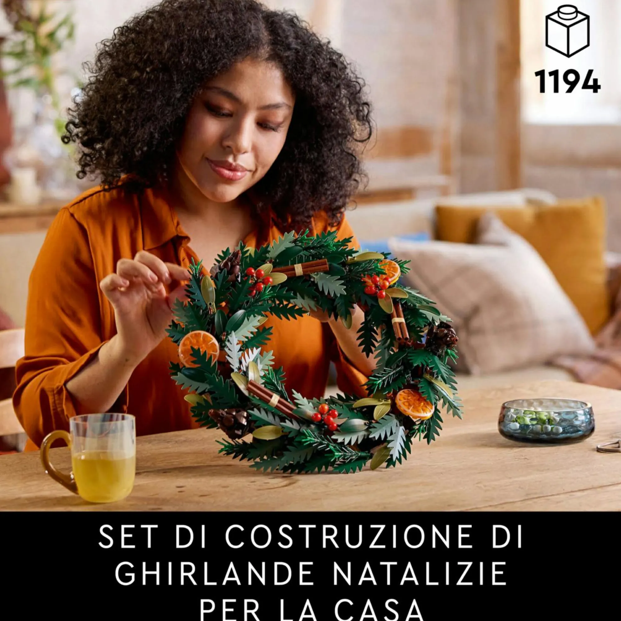 Ghirlanda natalizia LEGO in mattoncini: questo set LEGO Icons di Natale per adulti permette di costruire una decorazione da parete o da tavolo per le festività, un progetto rilassante che può essere realizzato insieme agli amici o con la famiglia