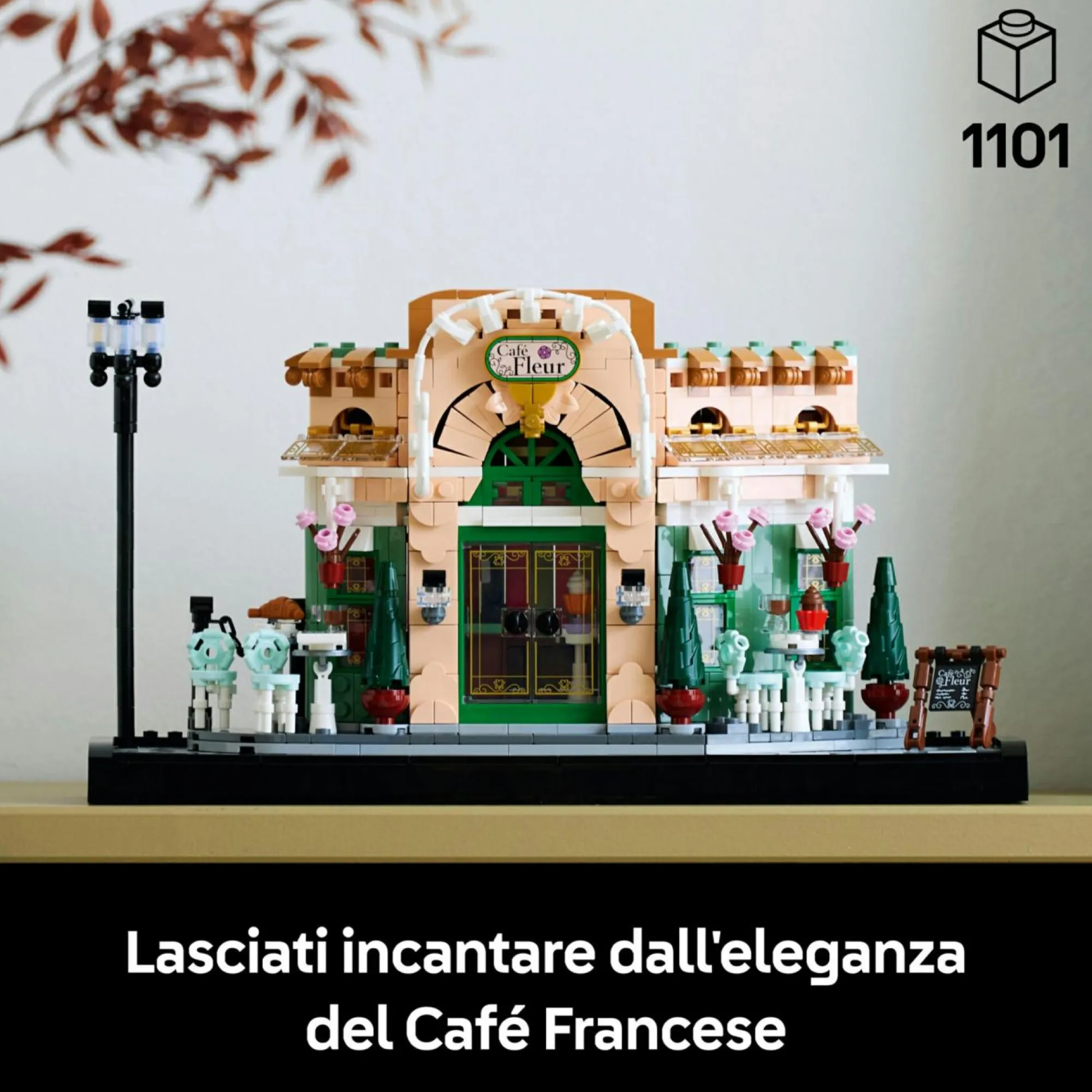 Modellino da costruire fai da te di bistrot LEGO da collezione: immergiti nel fascino della cultura del caffè francese con il progetto di costruzione LEGO Icons per adulti Café Francese
