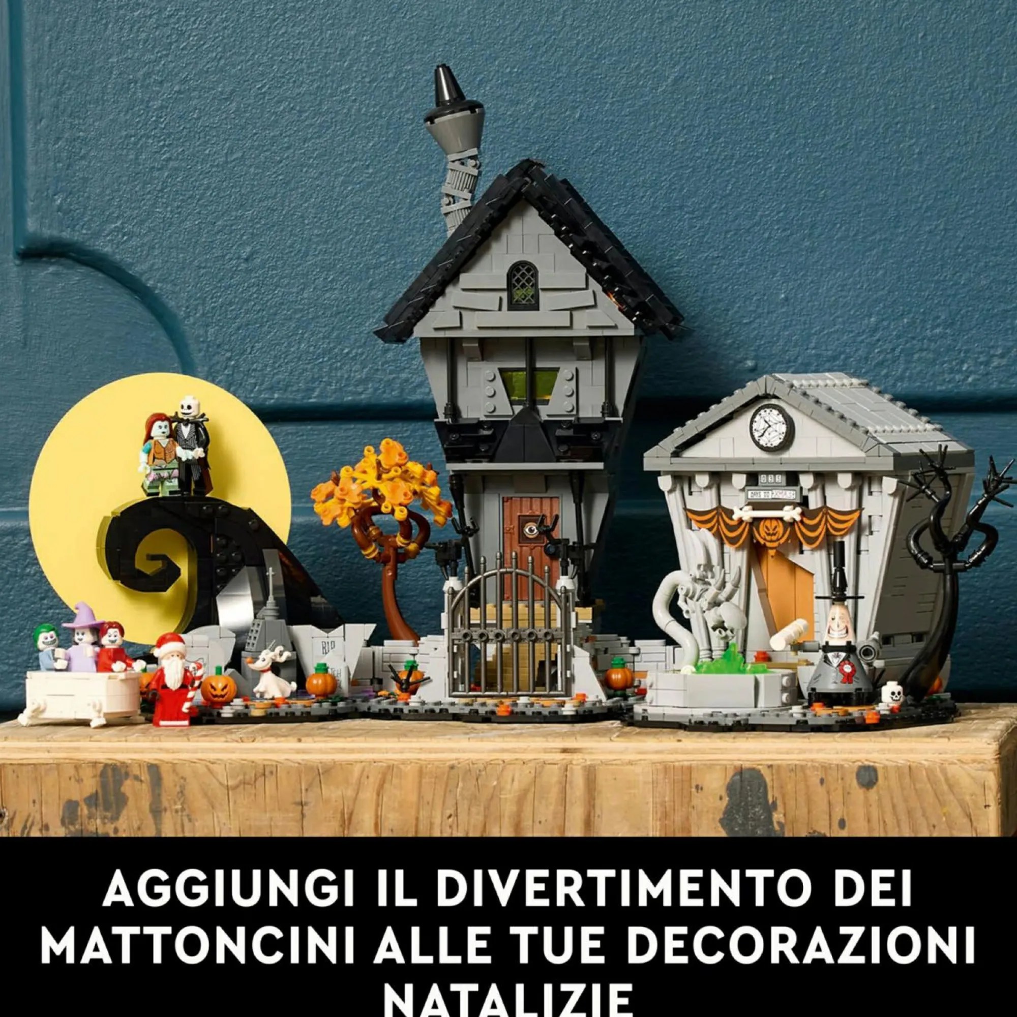 Kit diorama LEGO per adulti: costruisci 3 ambientazioni iconiche di The Nightmare Before Christmas Disney di Tim Burton, crea una simpatica decorazione di Natale per casa con questo set LEGO Ideas da collezione