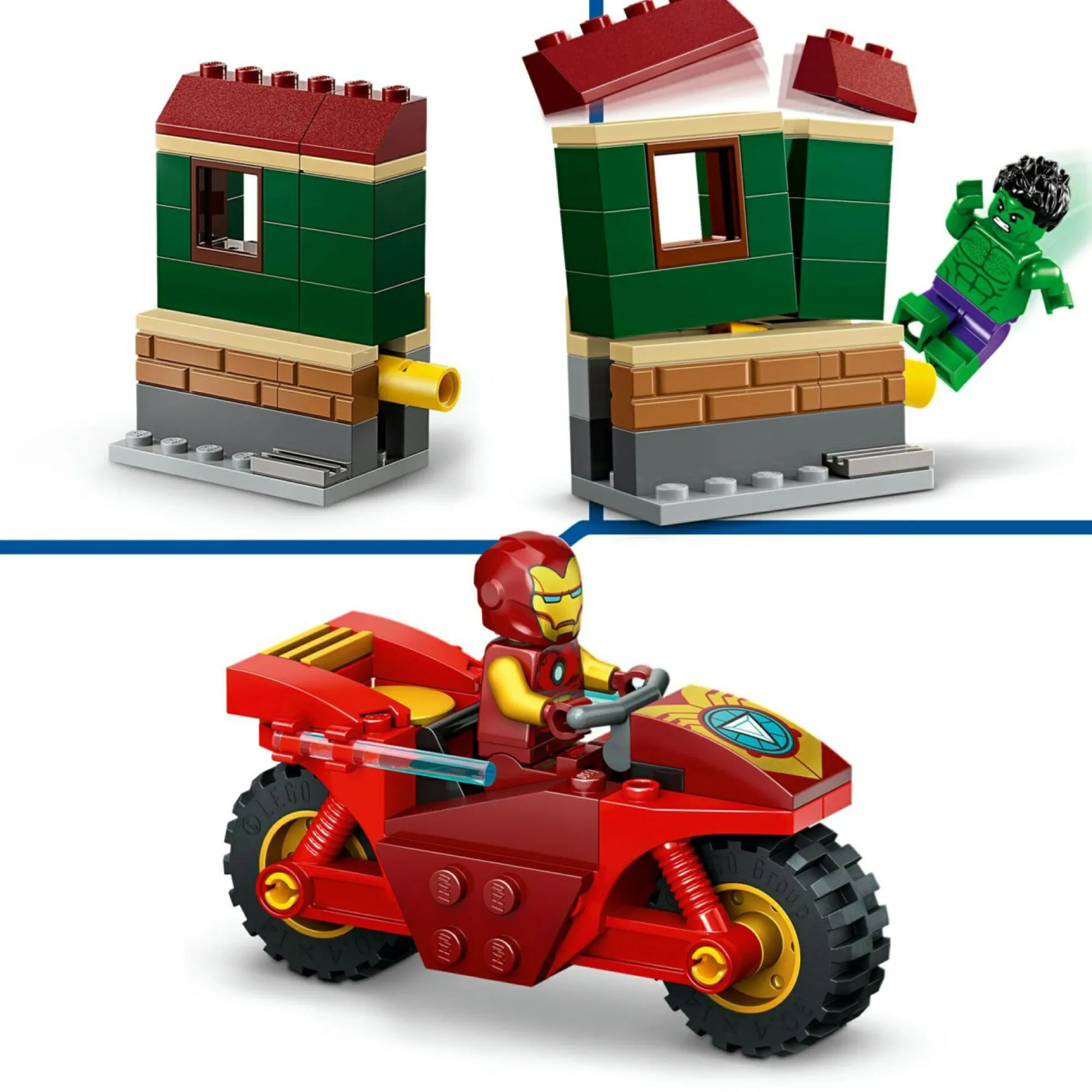 Giocattolo con Iron Man e l’Incredibile Hulk: questo set di giochi d’avventura per bambini e bambine da 4 ann in su, Iron Man con Moto e The Hulk LEGO Marvel da costruire, è stato appositamente pensato per i piccoli fan dei supereroi Avengers