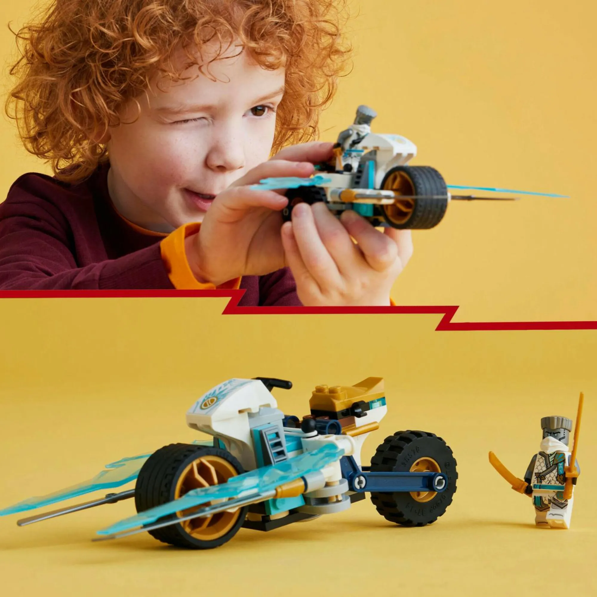 Moto giocattolo per bambini: con il gioco d’azione per bambini e bambine da 7 anni in su, il set LEGO NINJAGO la Moto di Ghiaccio di Zane, i piccoli ninja possono dai rivivere l’azione della Stagione 2 del programma TV La rivolta dei draghi NINJAGO