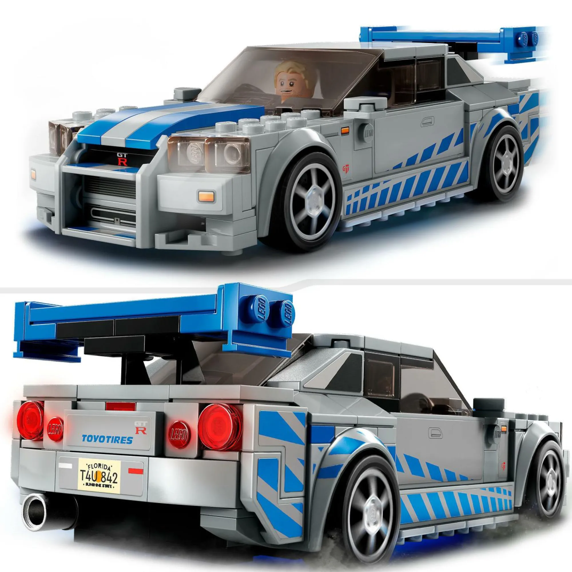 Questo elegante modellino di auto da collezione LEGO Speed Champions 2023 include una minifigure di Brian O’Conner da posizionare al volante della Nissan Skyline GT-R (R34)