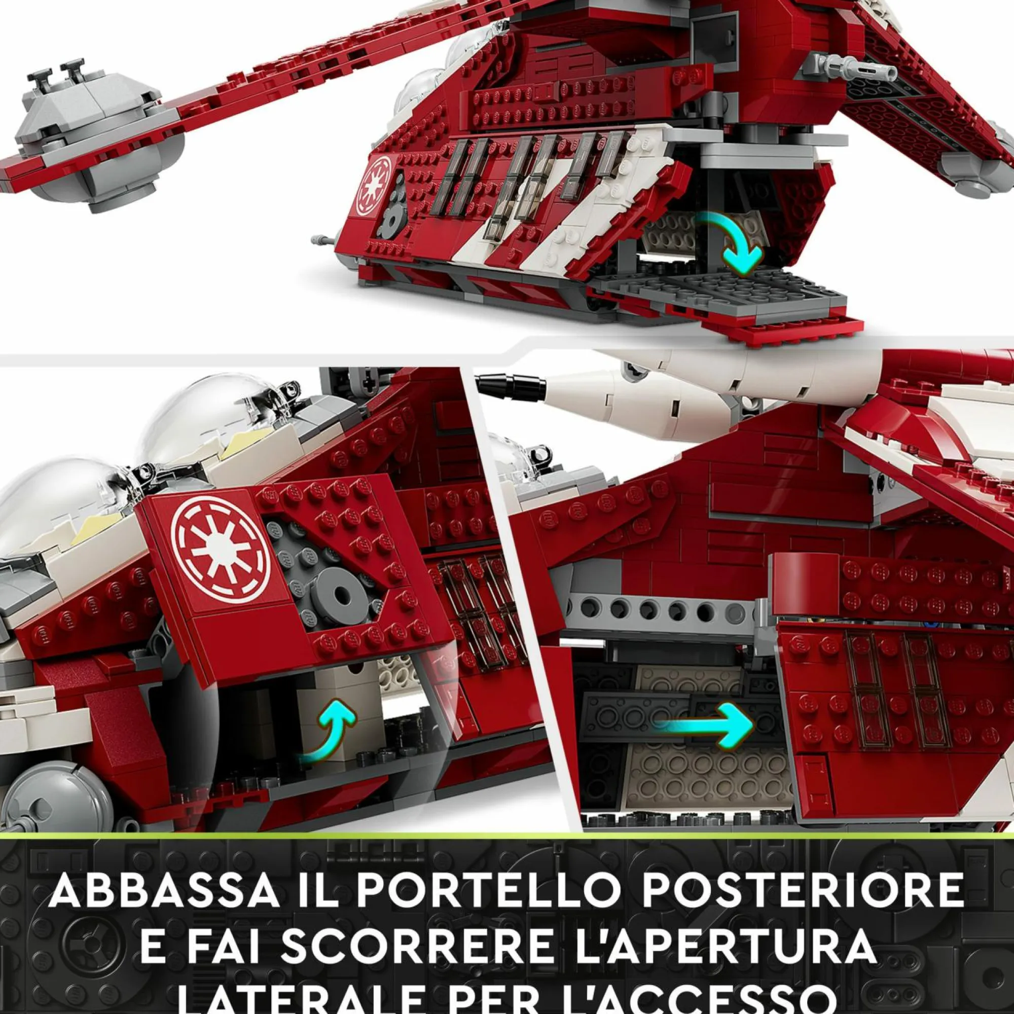Trasporta le truppe d’assalto d’élite e ricrea le storie di Star Wars: Le Guerre dei Cloni, con il set LEGO Star Wars Gunship della Guardia di Coruscant, dotato di un’astronave costruibile e di 5 minifigure