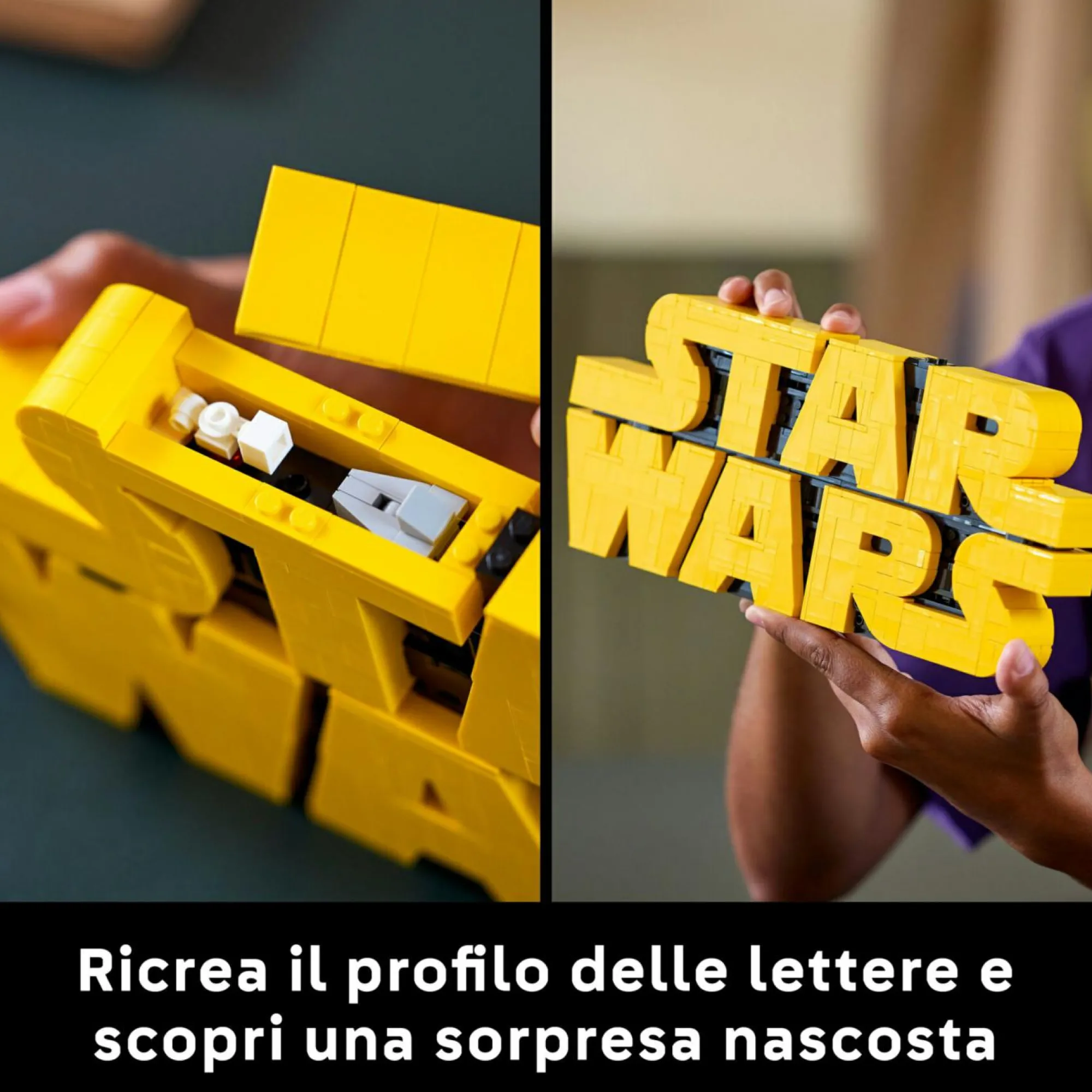 Modellino da costruire per adulti ricco di dettagli: il logo Star Wars presenta i classici dettagli in greebling, con le costruzioni LEGO nelle aree nere tra le lettere gialle; nella “T” di Star Wars è inoltre presente una piccola sorpresa per i fan