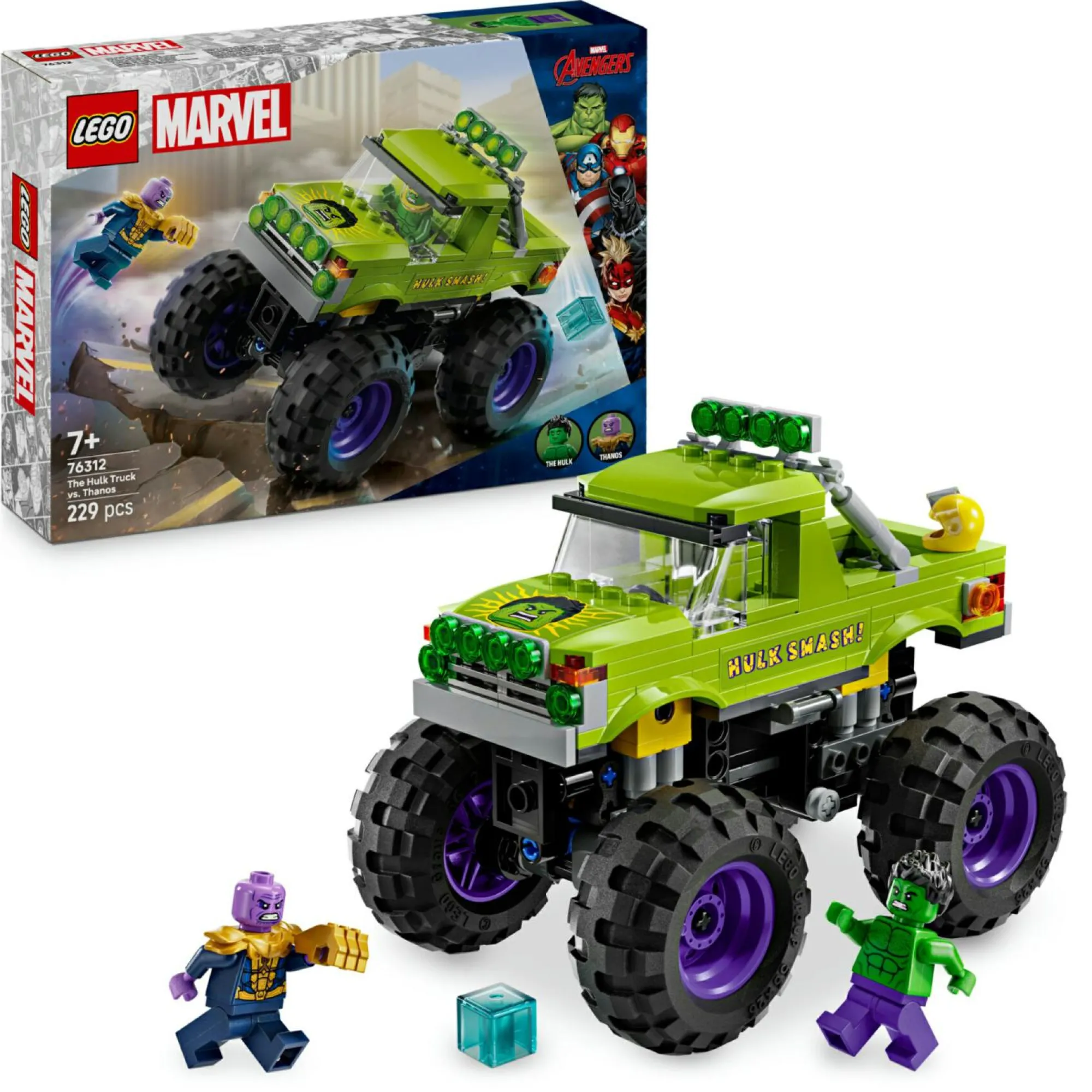 Camion giocattolo di Hulk con grandi ruote: il Truck di Hulk Contro Thanos è un gioco per bambini e bambine da 7 anni in su fan dei Supereroi LEGO | Marvel, con cui dar vita a combattimenti ricchi d’azione con un veicolo pronto per la battaglia