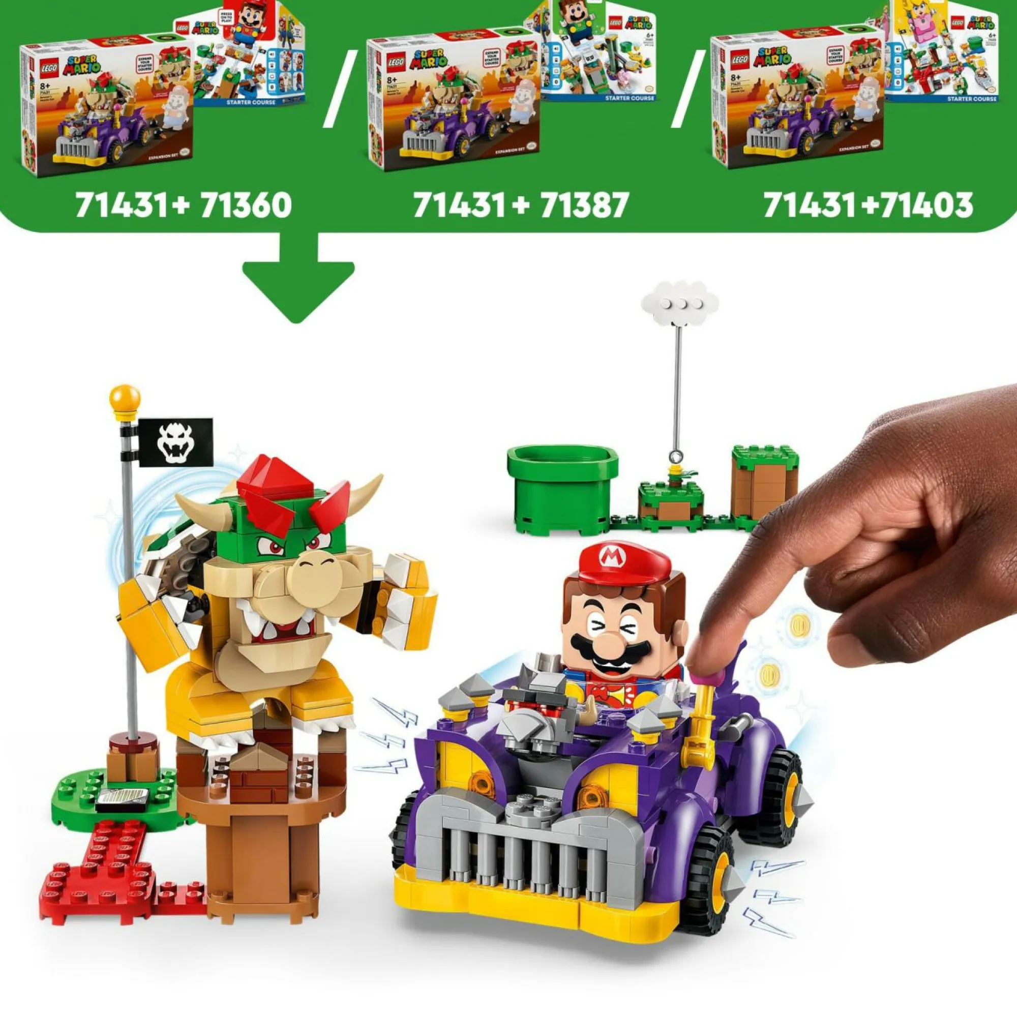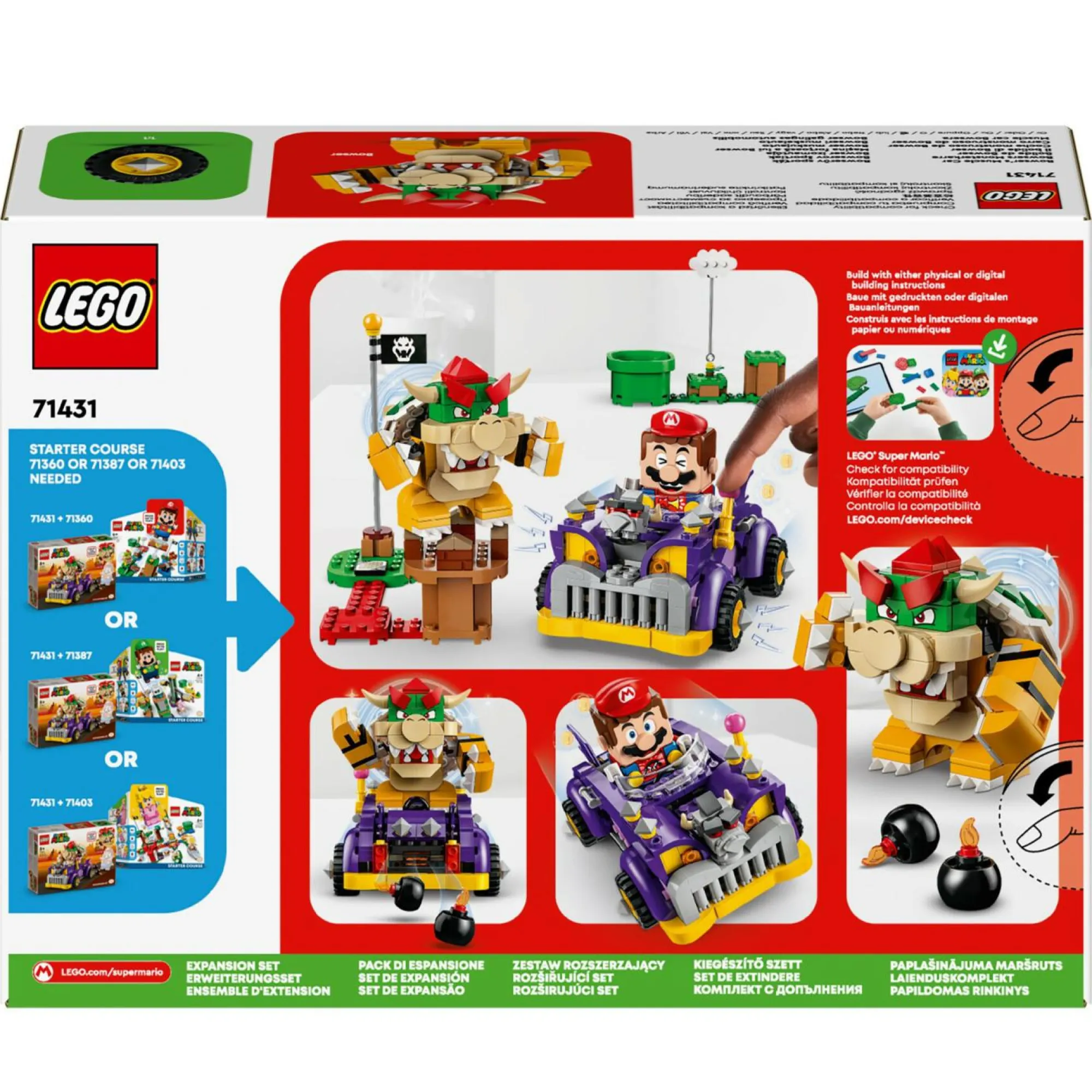 Macchina giocattolo di Bowser: il gioco creativo per bambini e bambine da 8 anni in su LEGO Super Mario Pack di Espansione Il Bolide di Bowser mette i piccoli alla guida di una divertente auto da corsa Mario Kart, per gare mozzafiato