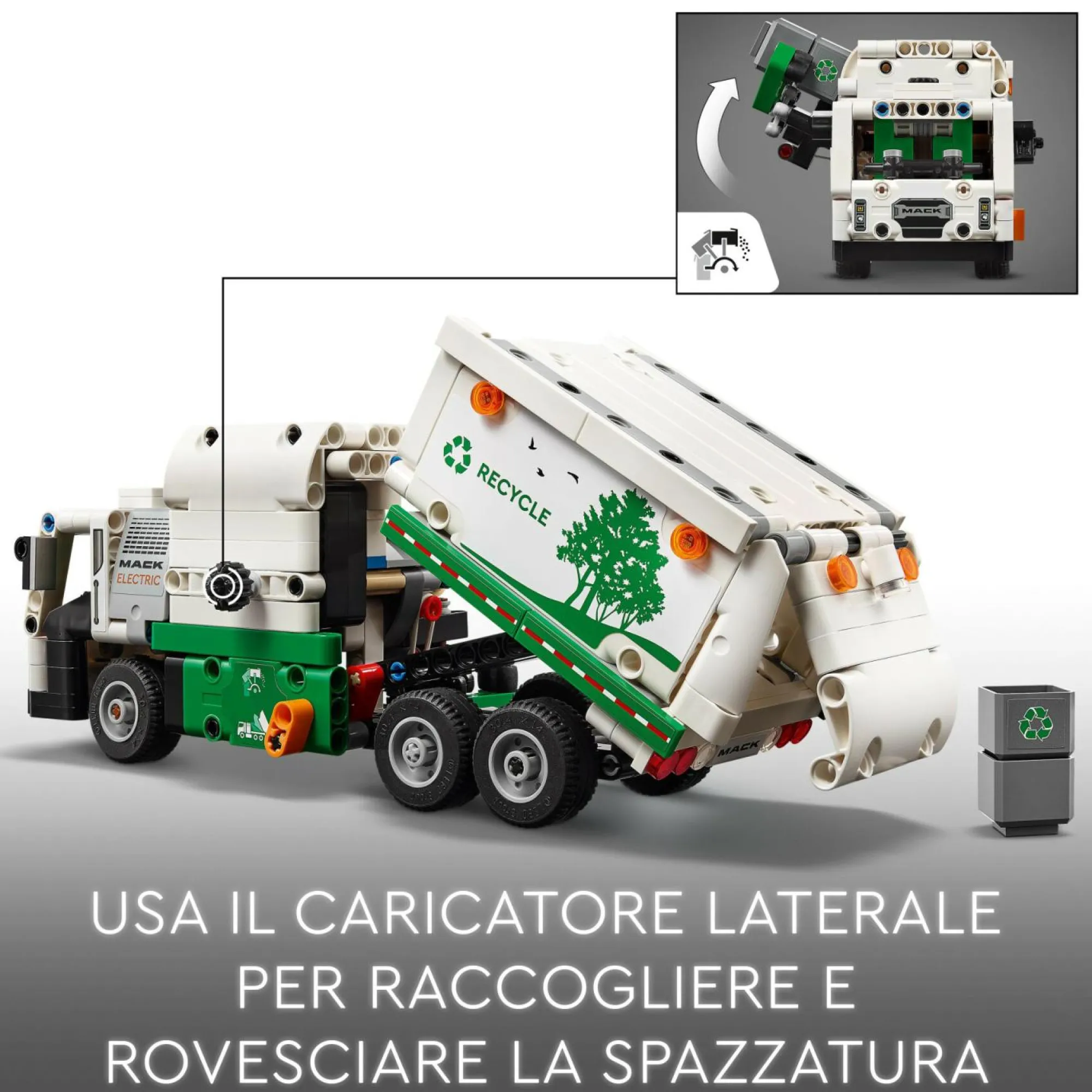 Camion della spazzatura giocattolo: il set LEGO Technic Camion della Spazzatura Mack LR Electric è un gioco per bambini e bambine da 8 anni in su, dotato di movimenti realistici per il gioco creativo