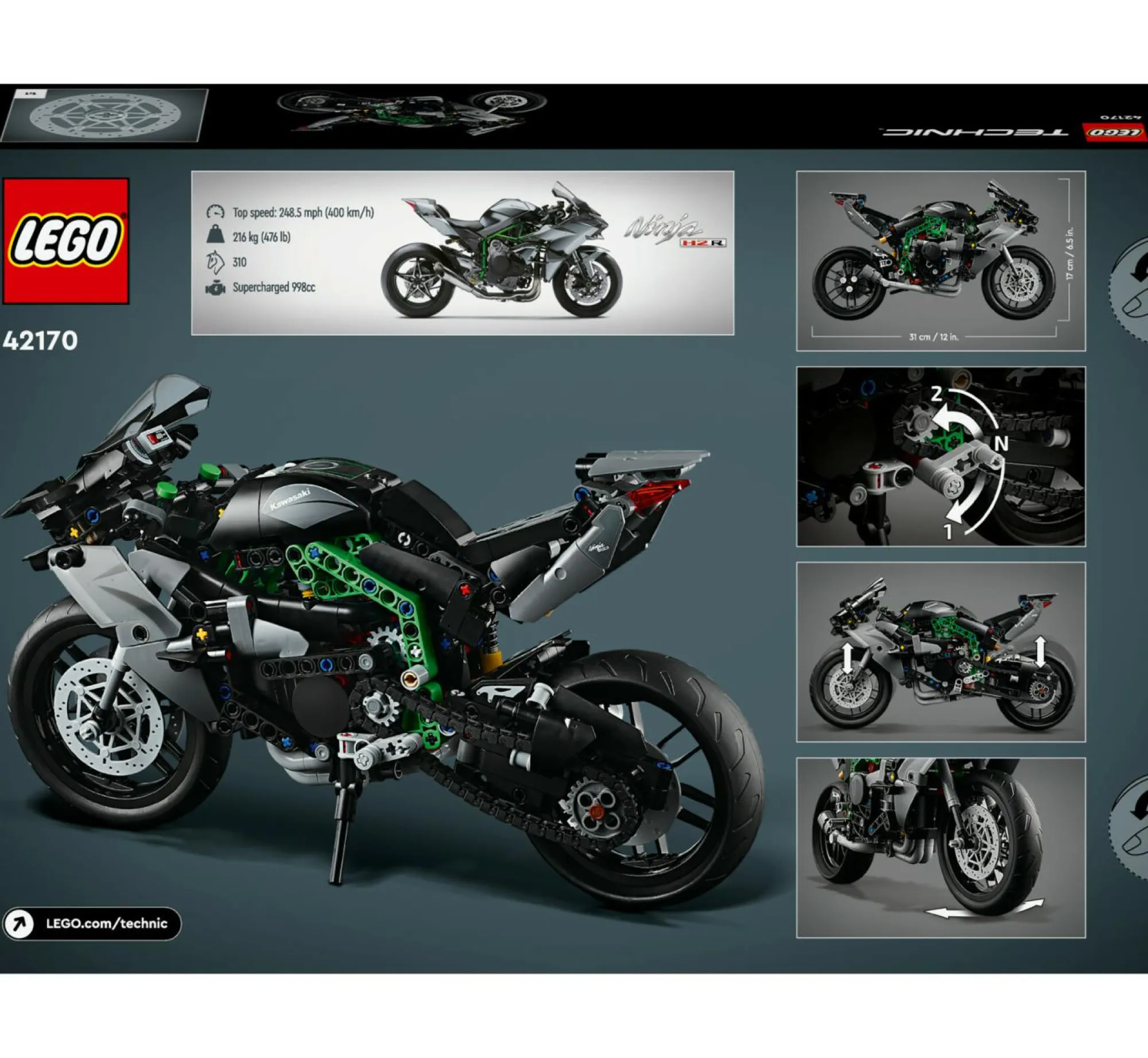 Moto Giocattolo per bambini e bambine da 10 anni in su: il set di costruzioni per bambini la Motocicletta Kawasaki Ninja H2R LEGO Technic, è ricco di dettagli e caratteristiche originali, ed offre ai piccoli un gratificante progetto di costruzione