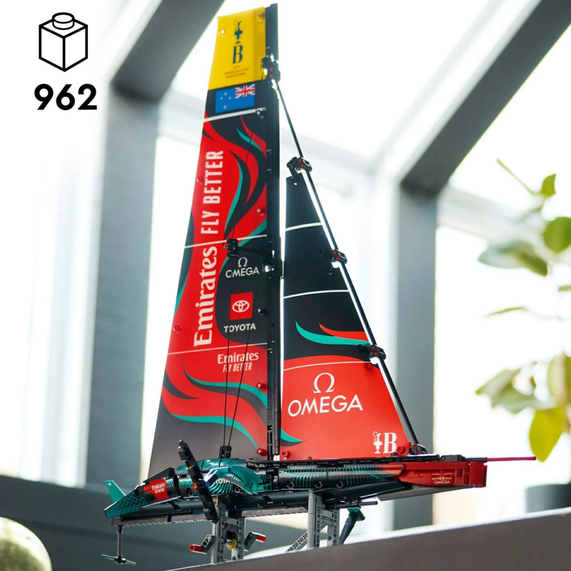 Set LEGO per adulti con barca da regata: questo kit di modellismo LEGO Technic permette di realizzare lo Yacht Emirates Team New Zealand AC75, un modellino di nave in mattoncini per una coinvolgente sfida di costruzione