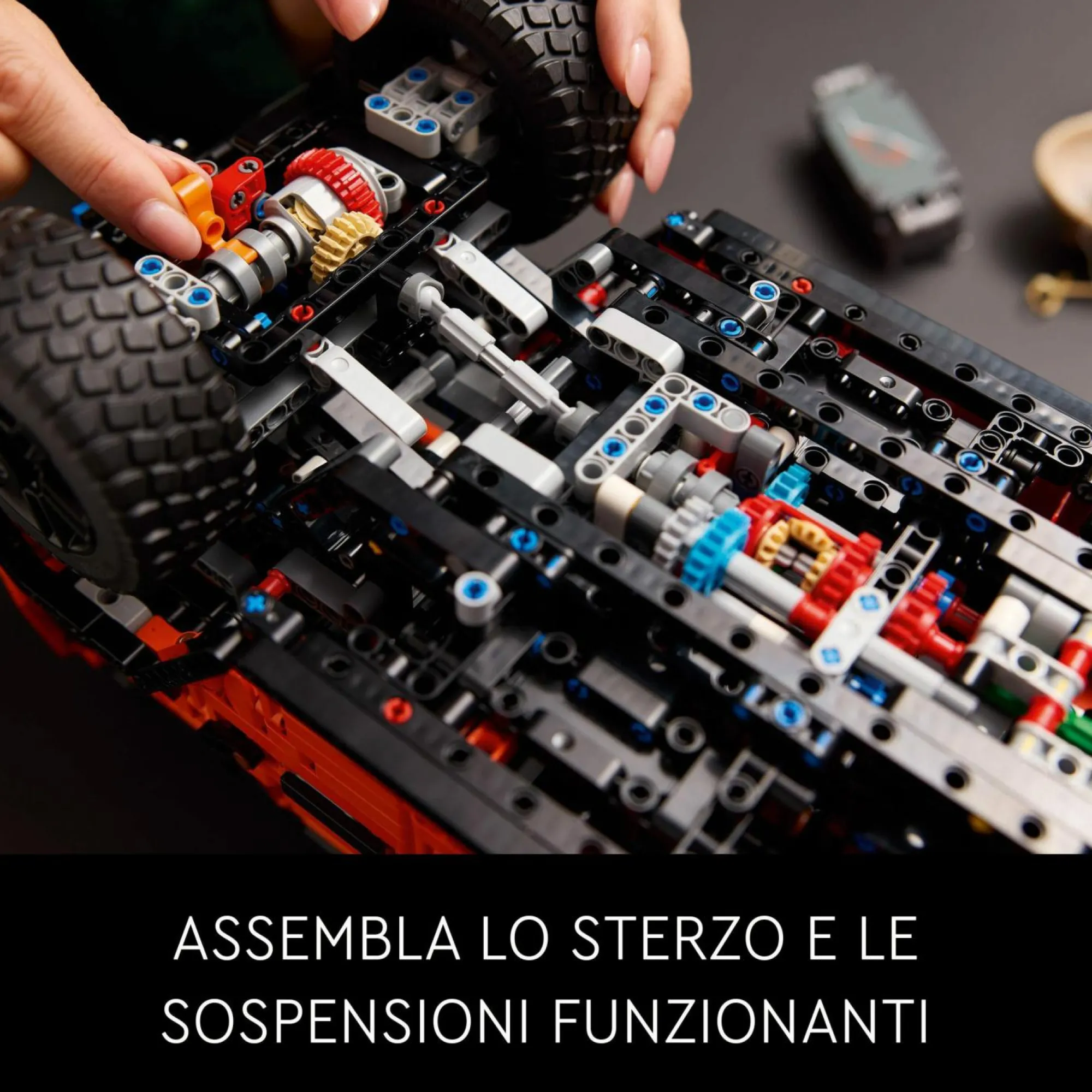 Modellino da costruire 4×4 della Classe G: dedicati a un progetto immersivo assemblando tutti i dettagli di questa macchina Mercedes LEGO Technic, come lo sterzo funzionante e le sospensioni rialzate