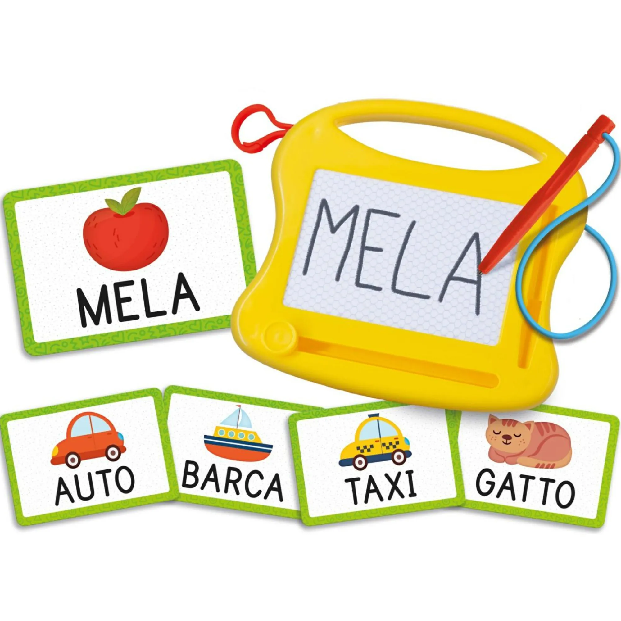 Lavagnetta scrivi e cancella – Pennino – 30 cards attività – Istruzioni