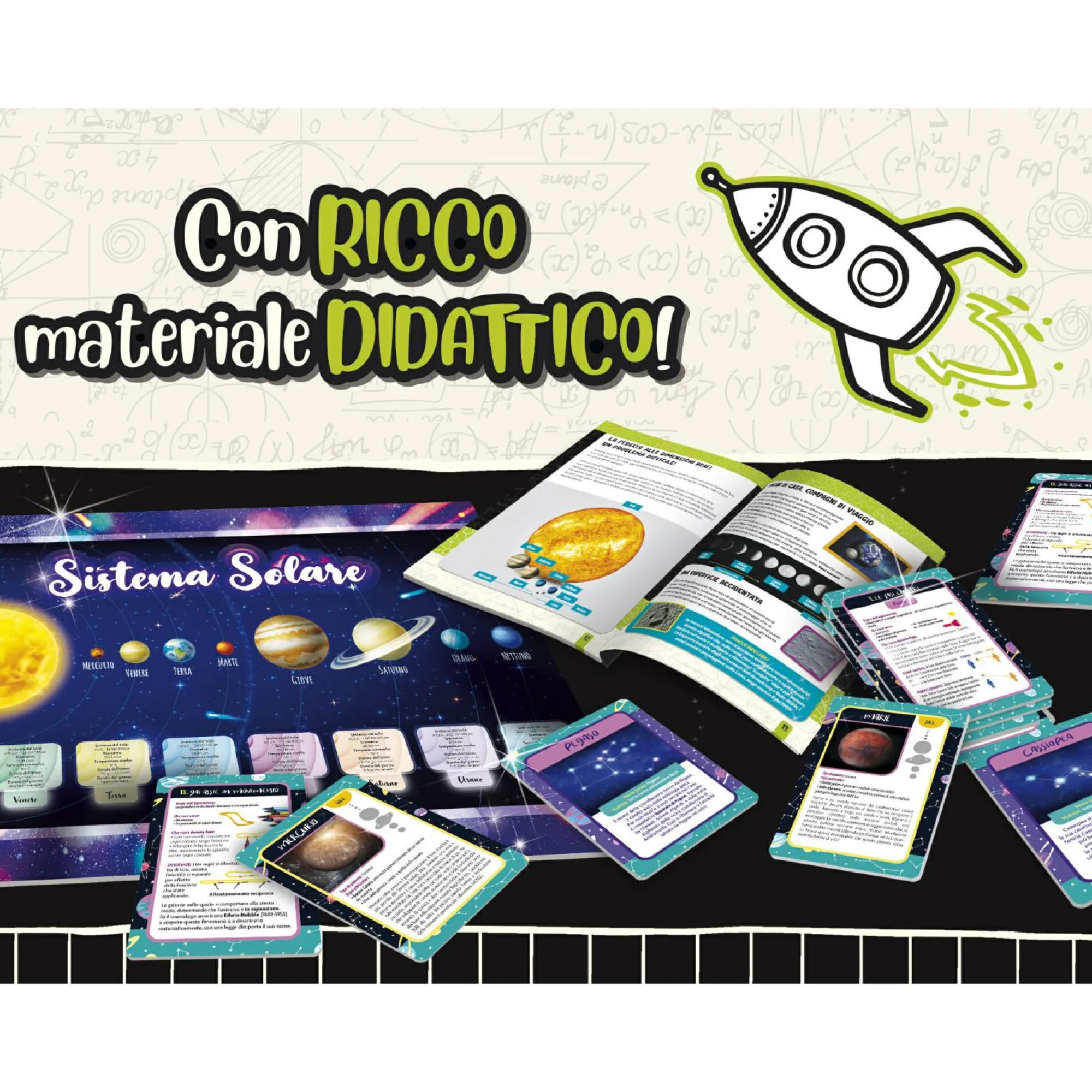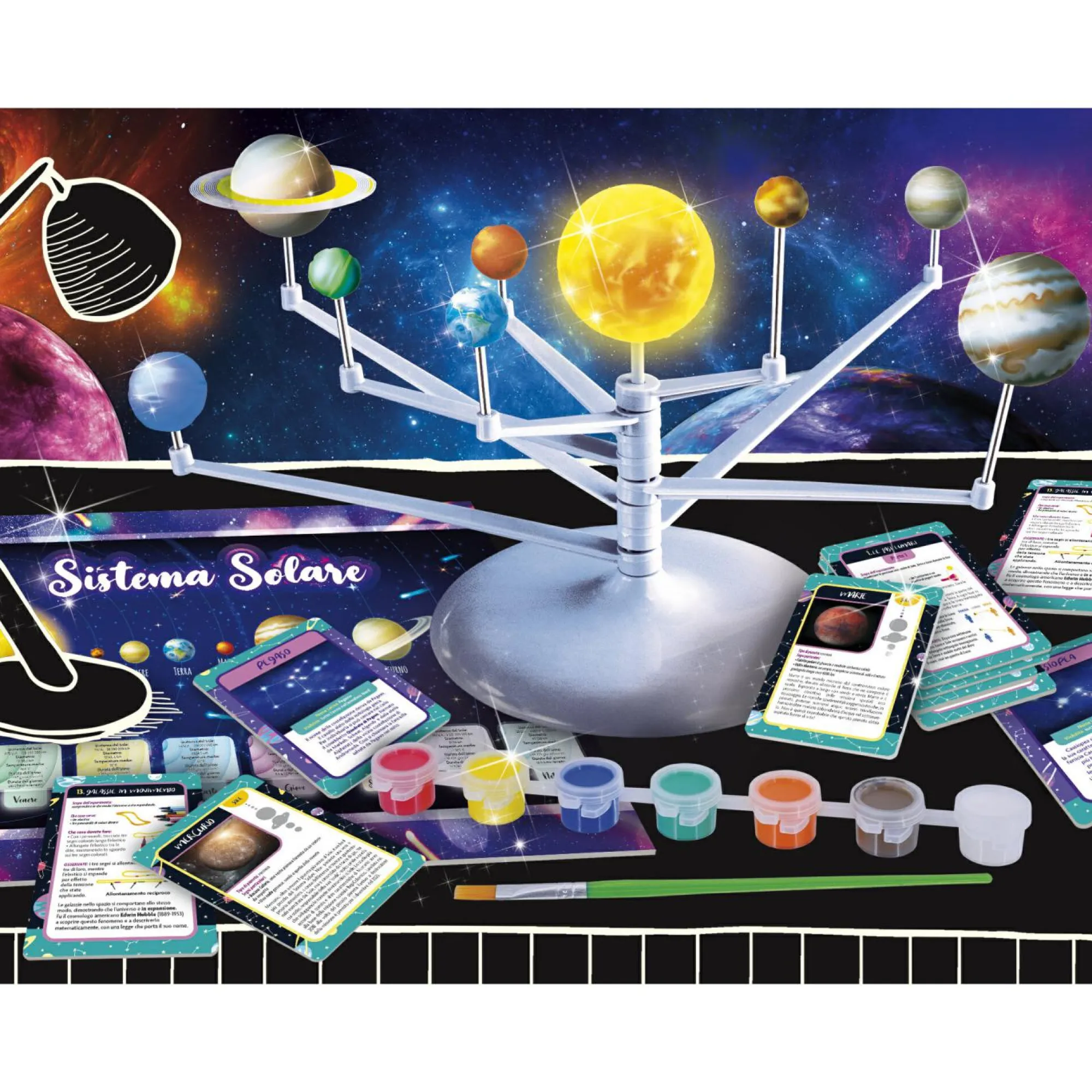 Modellino sistema solare da costruire, pennello, colori a tempera, cards astronomia, poster, manuale illustrato