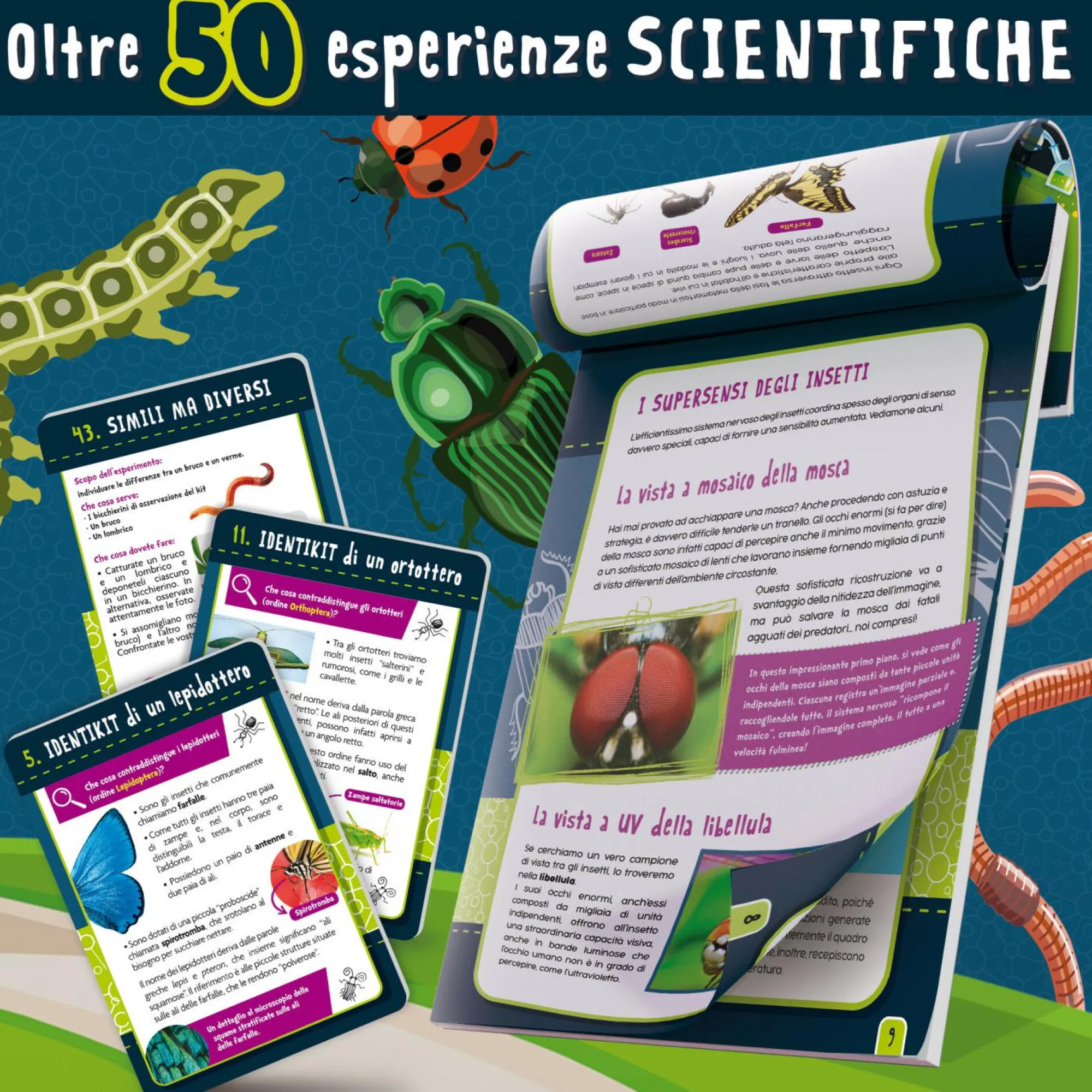 Bug viewer con lente d’ingrandimento, pinzetta, bug catcher, retino, cards esperimenti e manuale illustrato