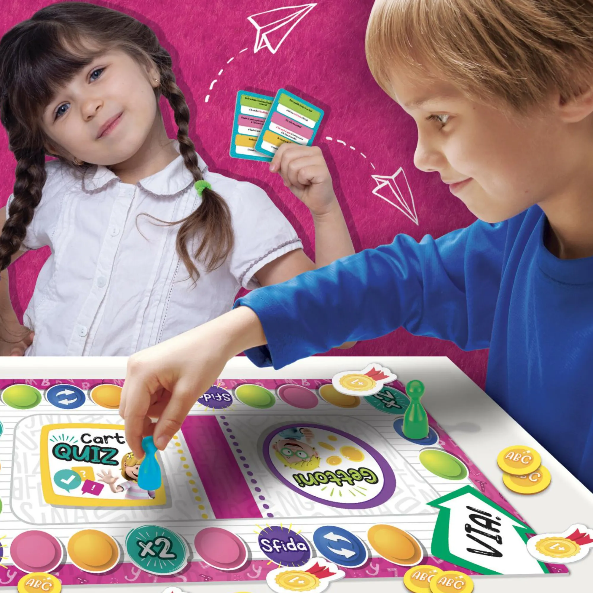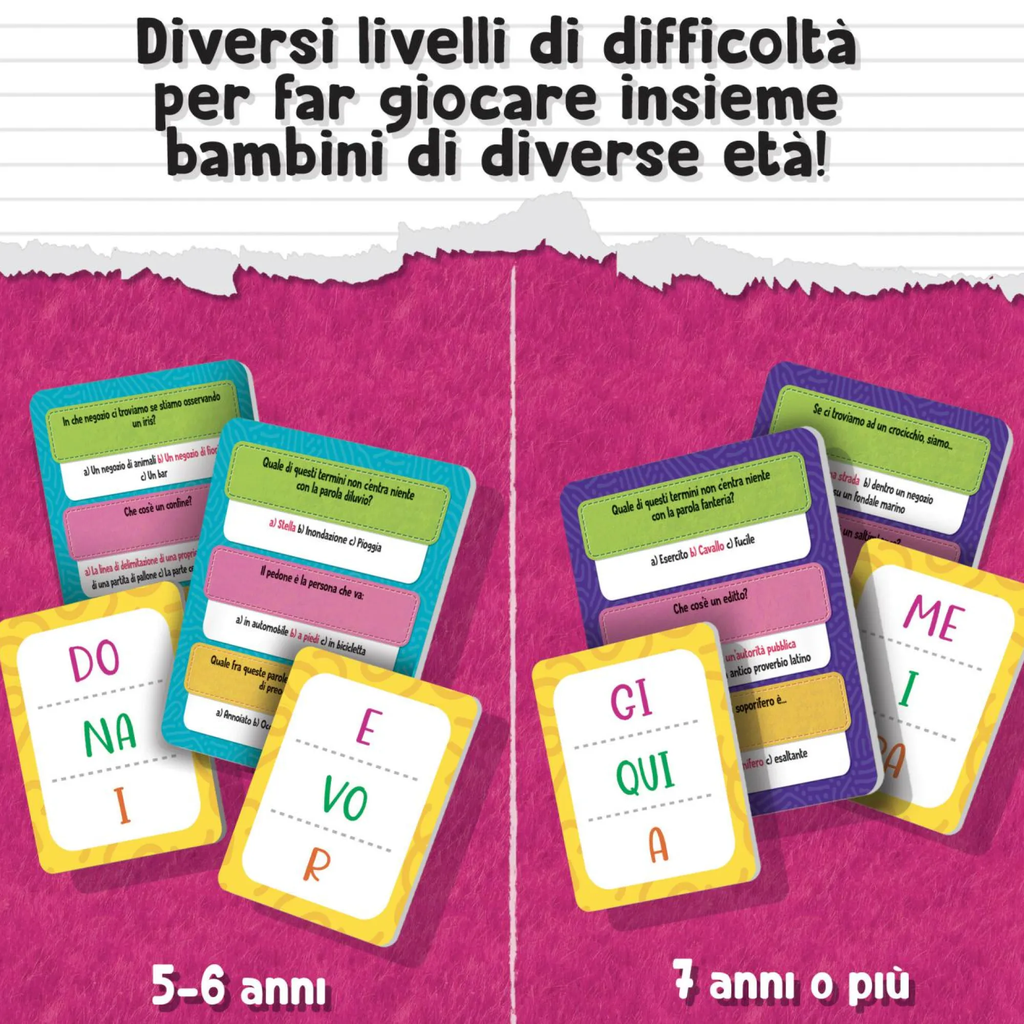 24 giocatori Basato sui programmi ministeriali 3 livelli di difficoltà Giocano grandi e piccoli insieme Tanti quiz stimolanti Lessico, ortografia e grammatica Sinonimi e contrari Definizioni e aree lessicali Minigiochi “formaparole” Co