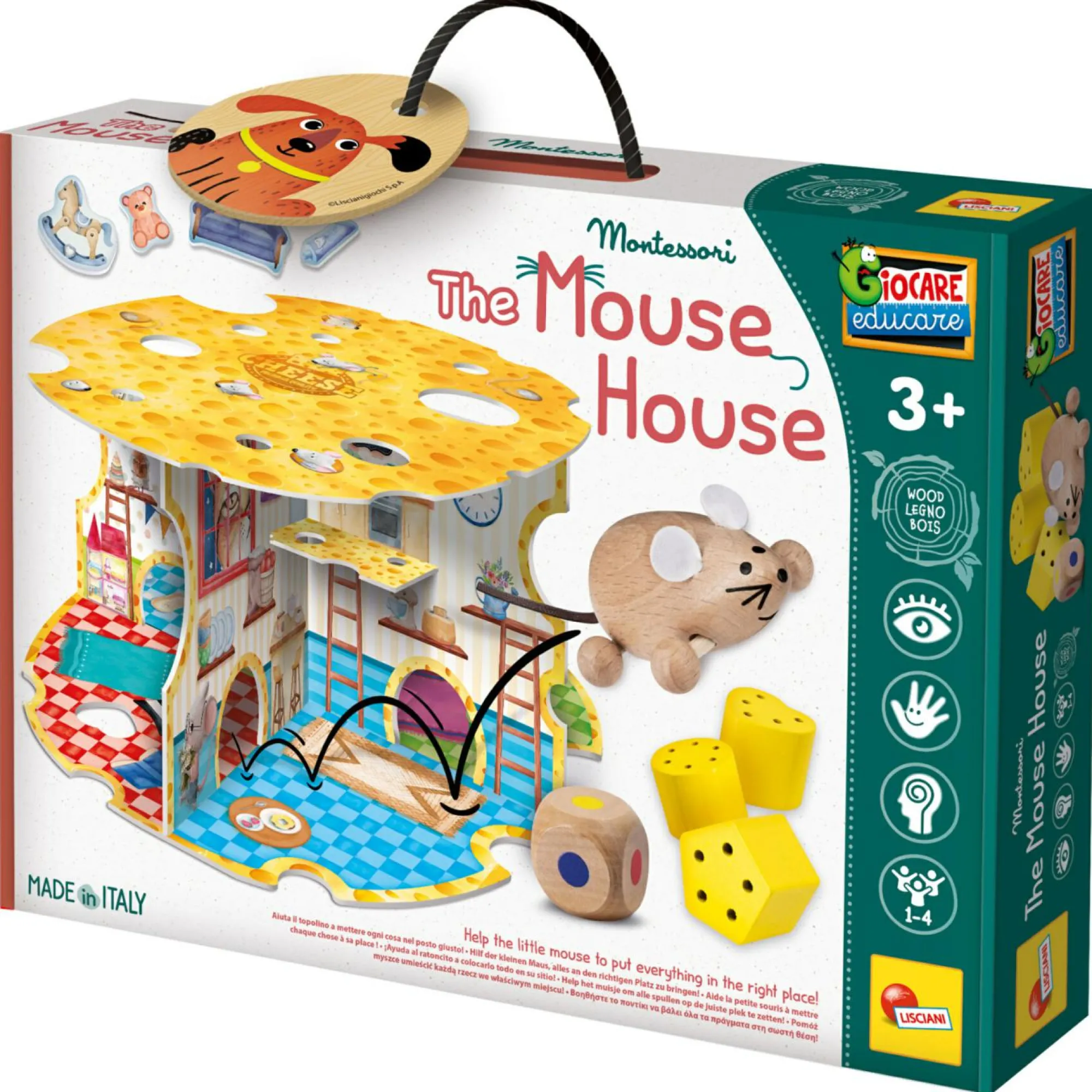 Topolino in legno – Forme geometriche in legno – Dado in legno – Gioco di percorso