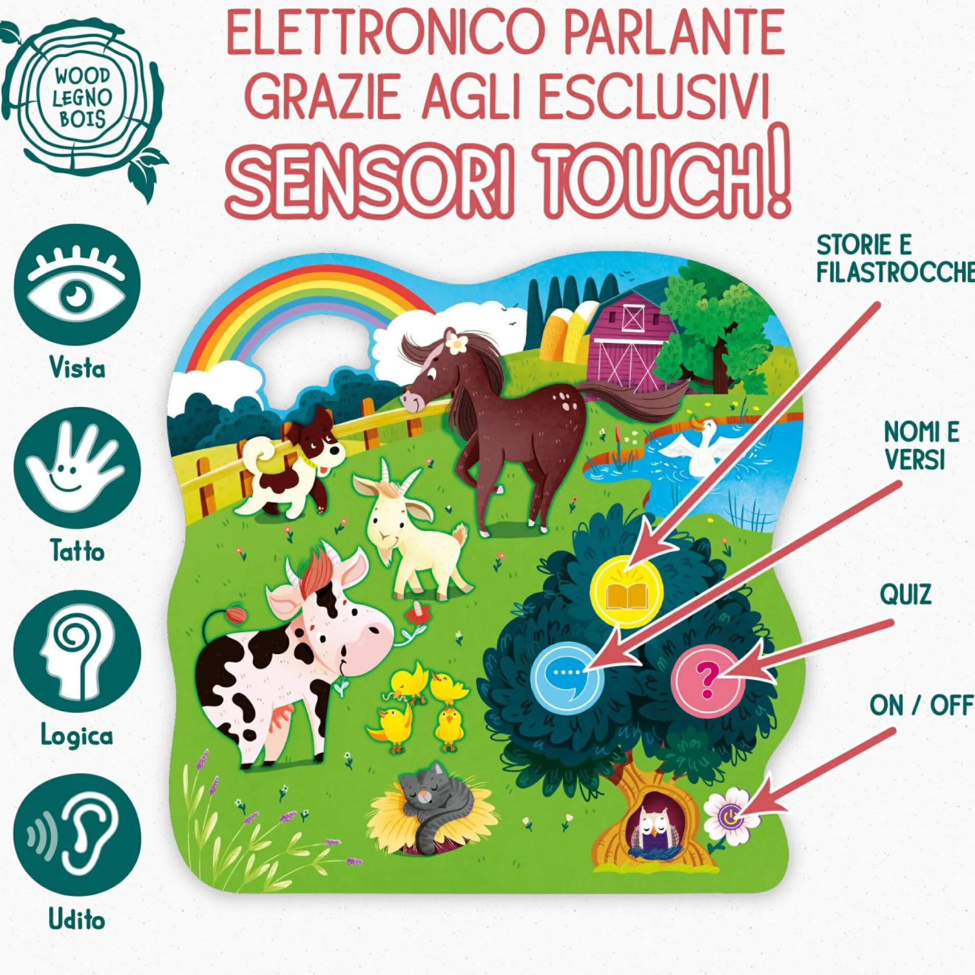 Base elettronica in legno – Sensori touch – Versi, filastrocche e quiz sulla fattoria “