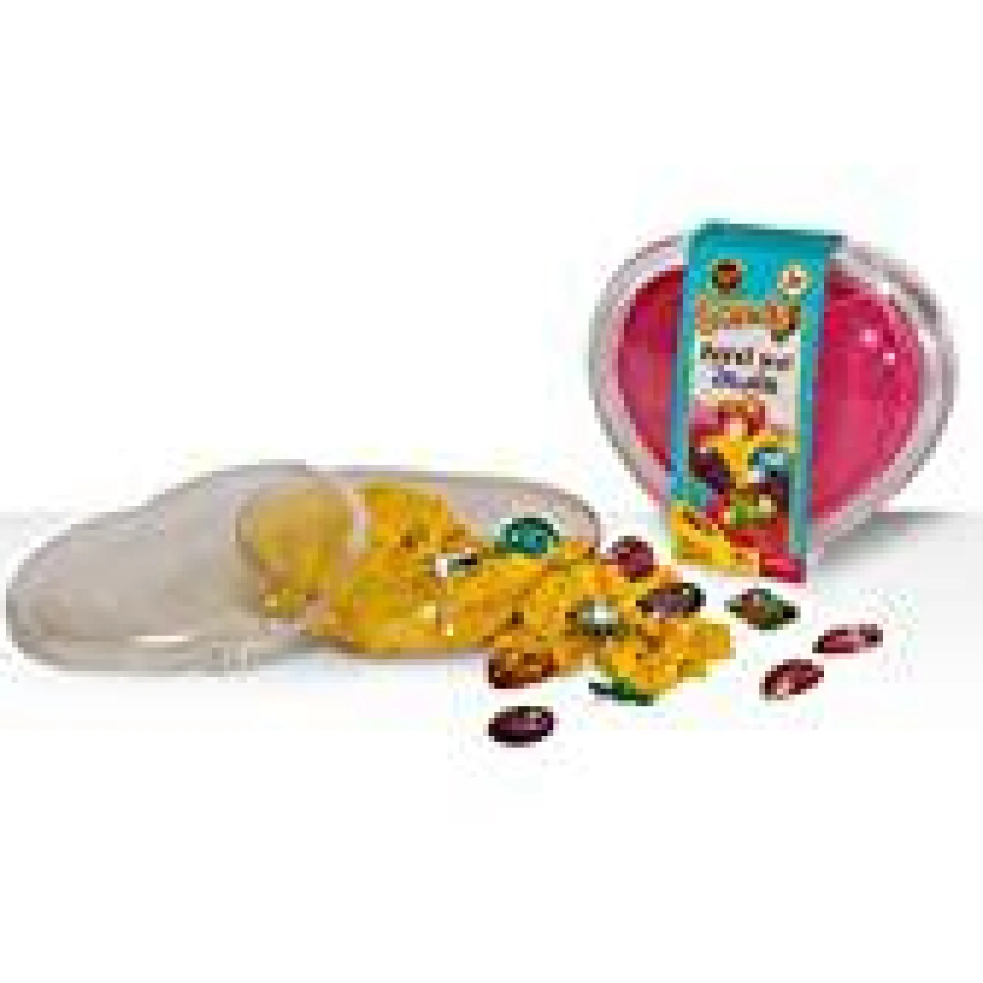 250 g di sabbia magica colorata; cuore in plastica; gemme brillanti