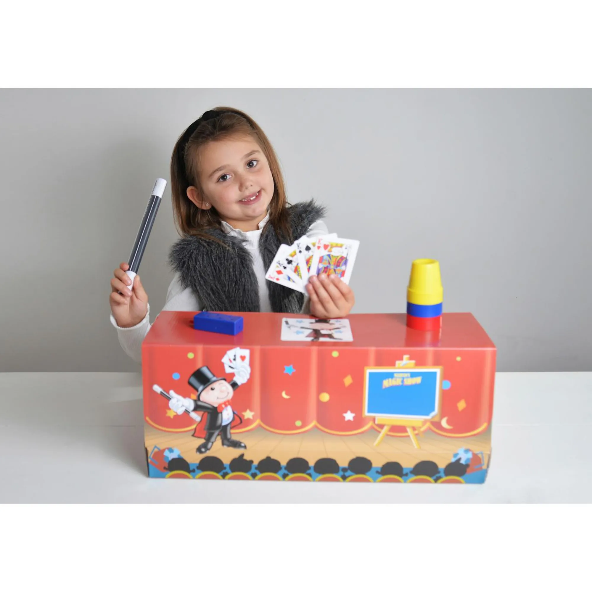 TRASFORMAZIONE SORPRENDENTE: La custodia dei maghi si trasforma in un tavolo da spettacolo con un’area dietro le quinte per contenere oggetti di scena segreti, offrendo un’esperienza magica completa per i giovani maghi.