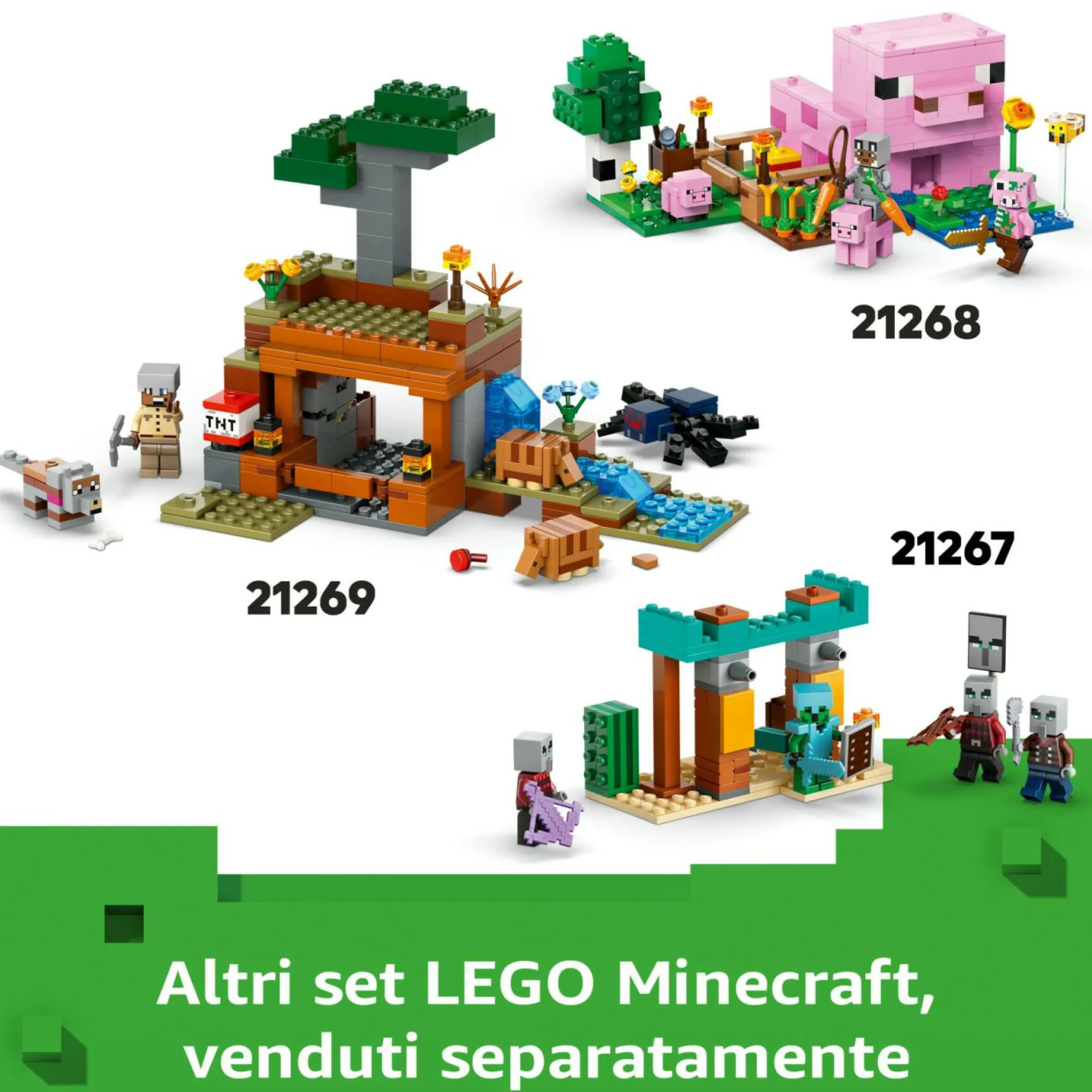 Inclusi personaggi Minecraft LEGO: il set comprende un ragno delle caverne giocattolo e un lupo, oltre a 2 armadilli, che forniscono lo scuto necessario per craftare l’armatura del lupo