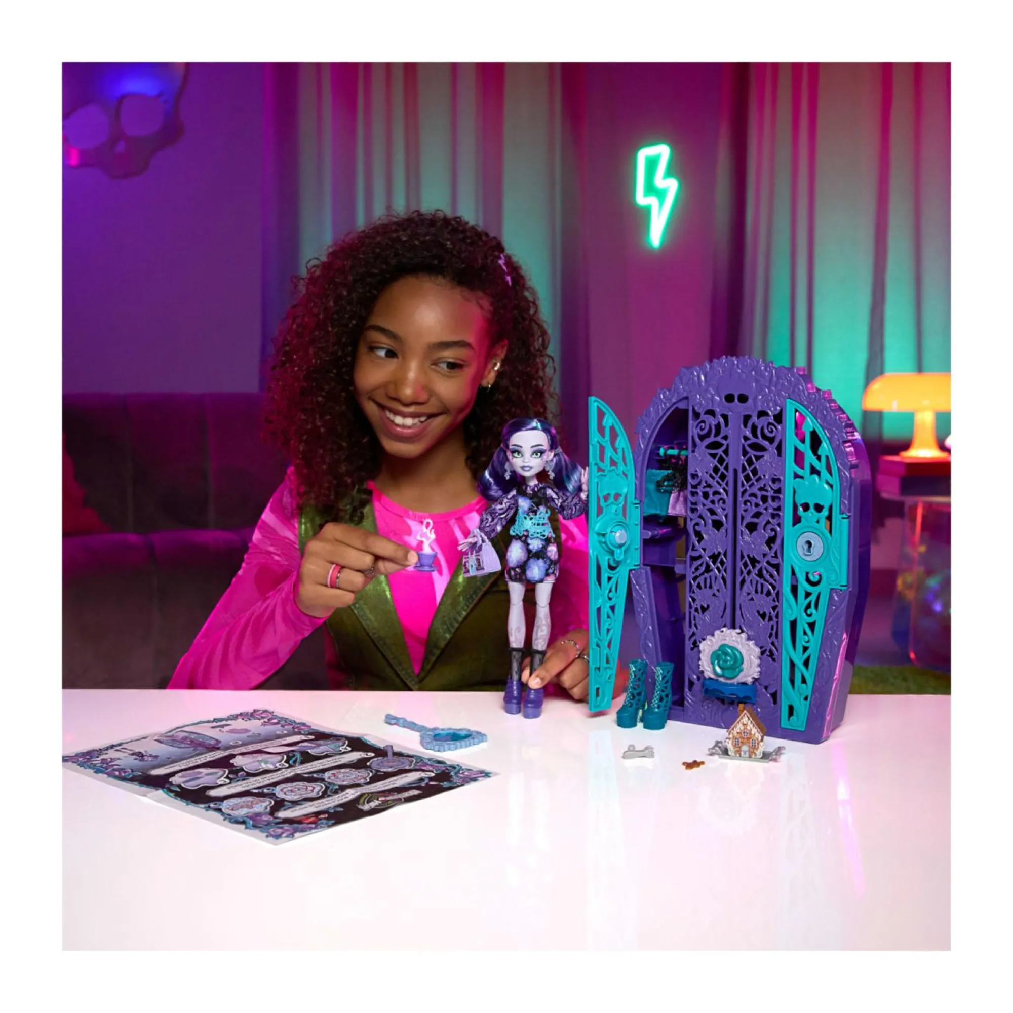 Scopri i segreti dietro le porte di Monster High con questo set con guardaroba Segreti da Brivido: I misteri in giardino! Include la bambola Twyla e abiti e accessori da urlo.
