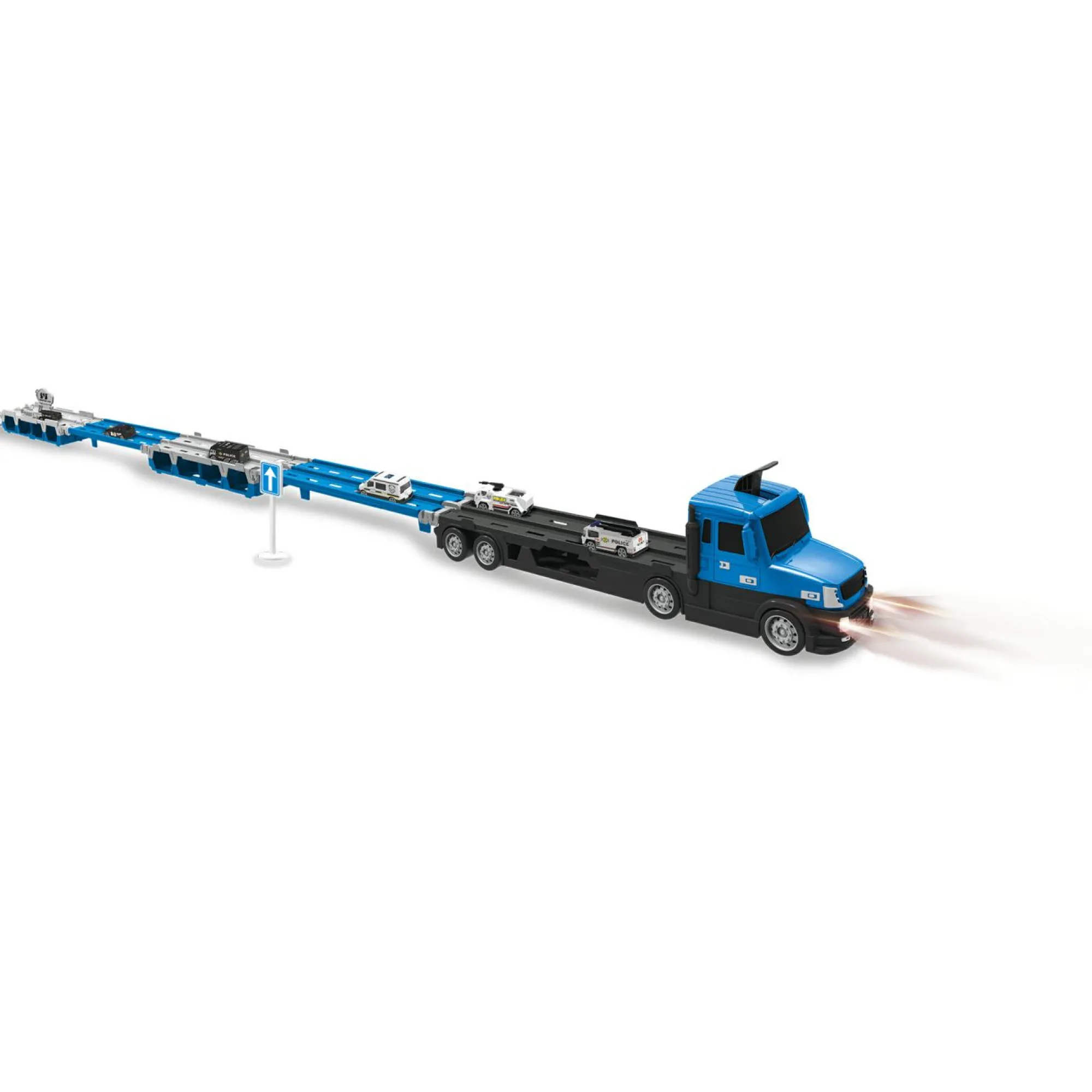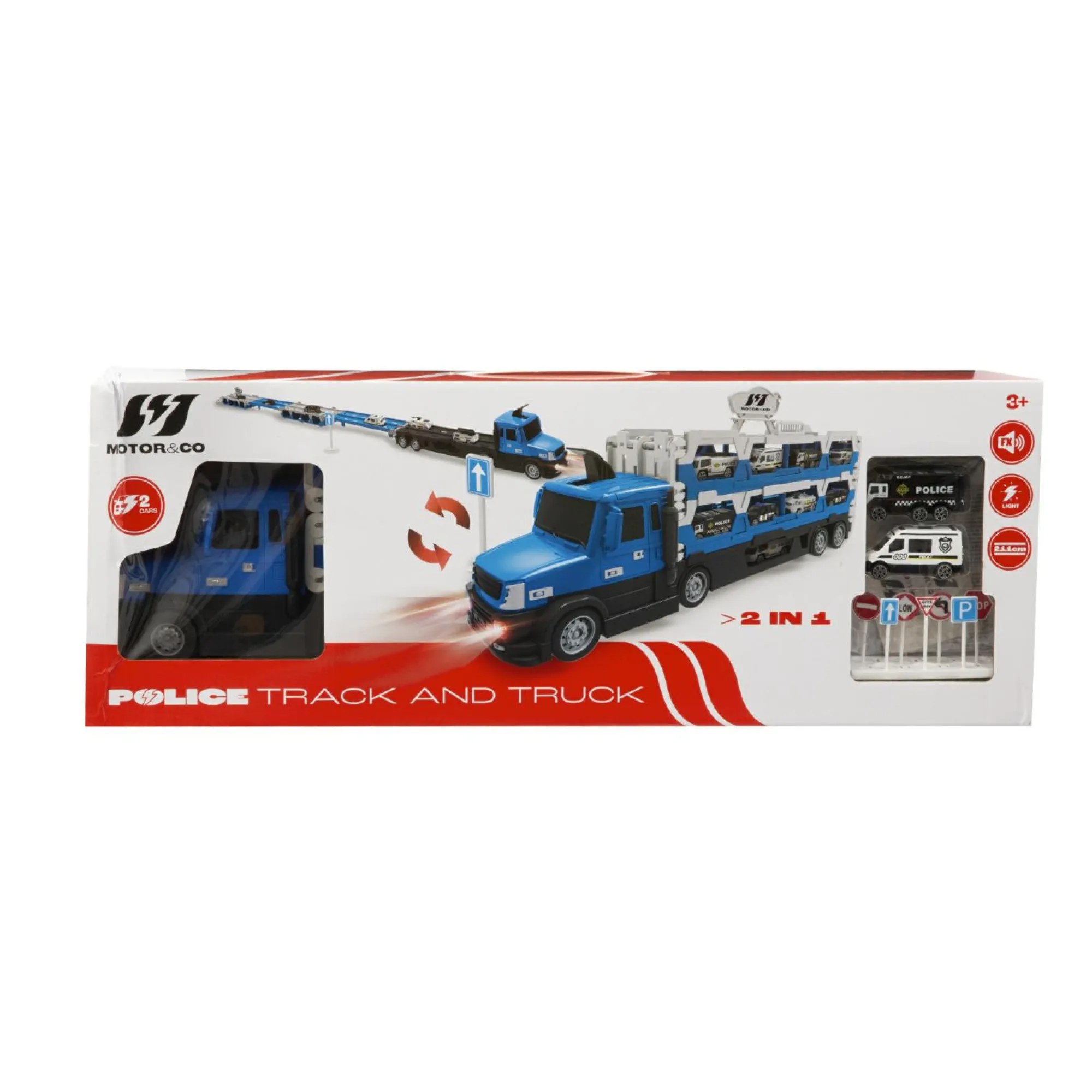 Camion della polizia Motor&Co. 2 in 1: Trasportatore e pista