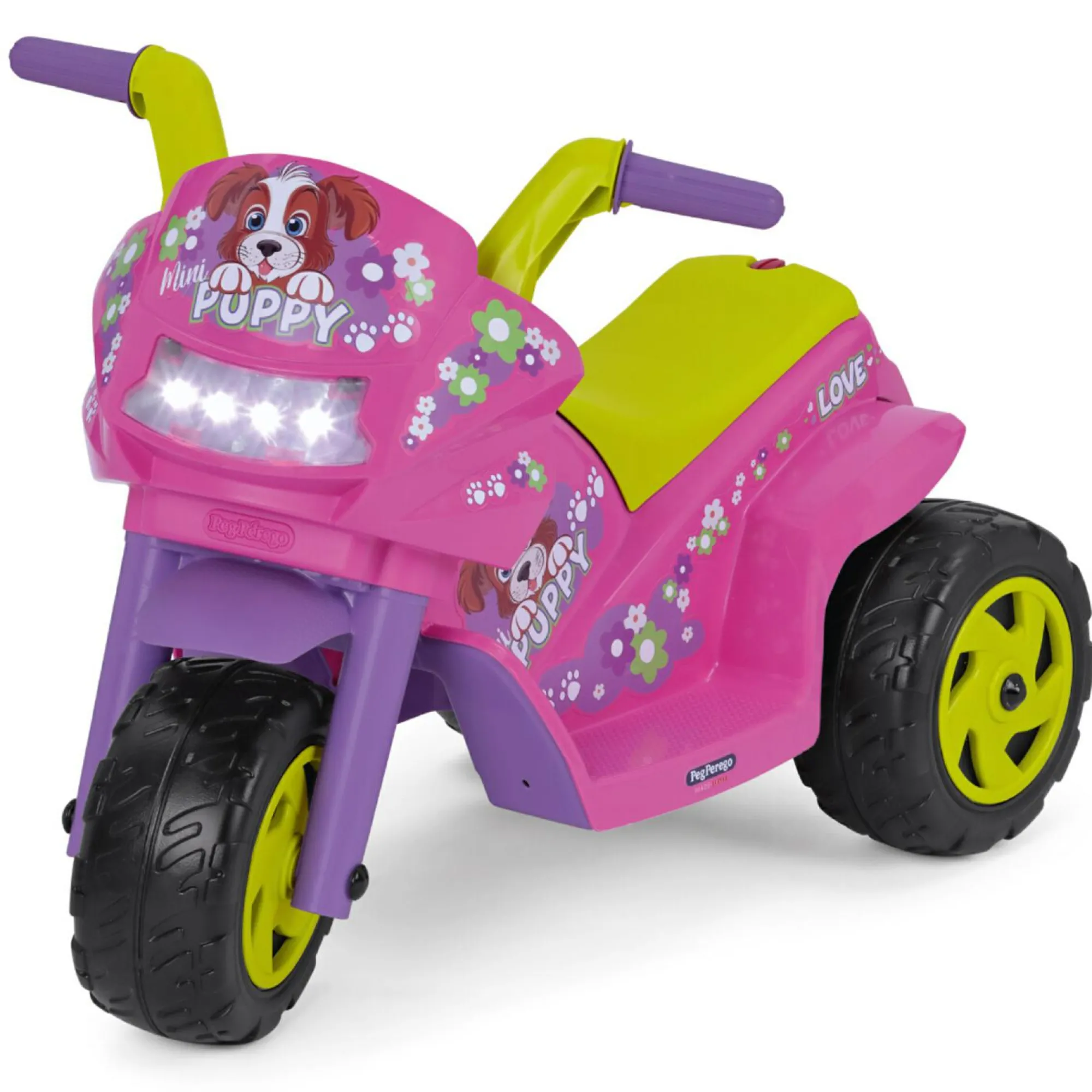 Accelera premendo il pedale o avvia con START per accendere luci LED anteriori e il motore. Usa il clacson o melodie preregistrate; per la tua musica.