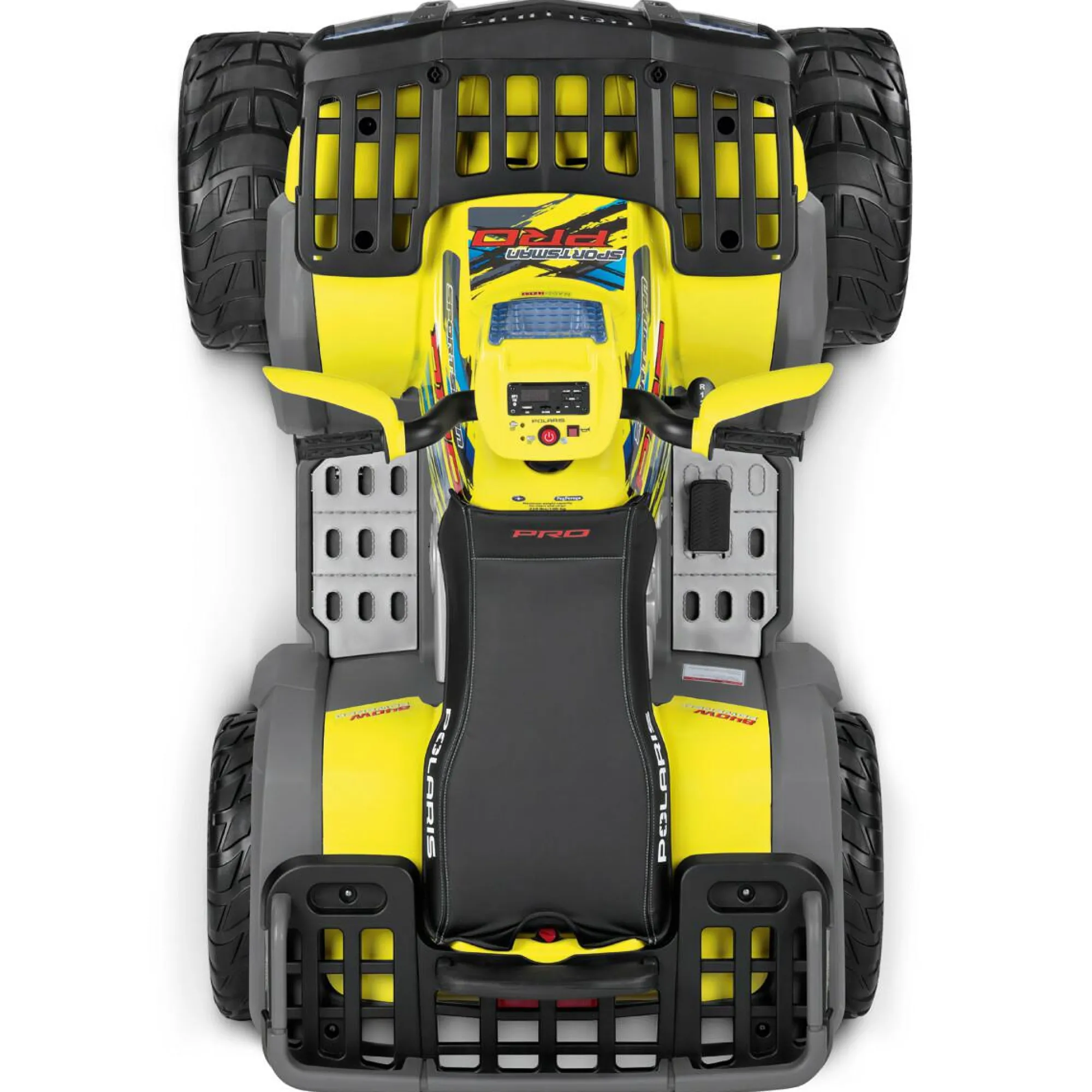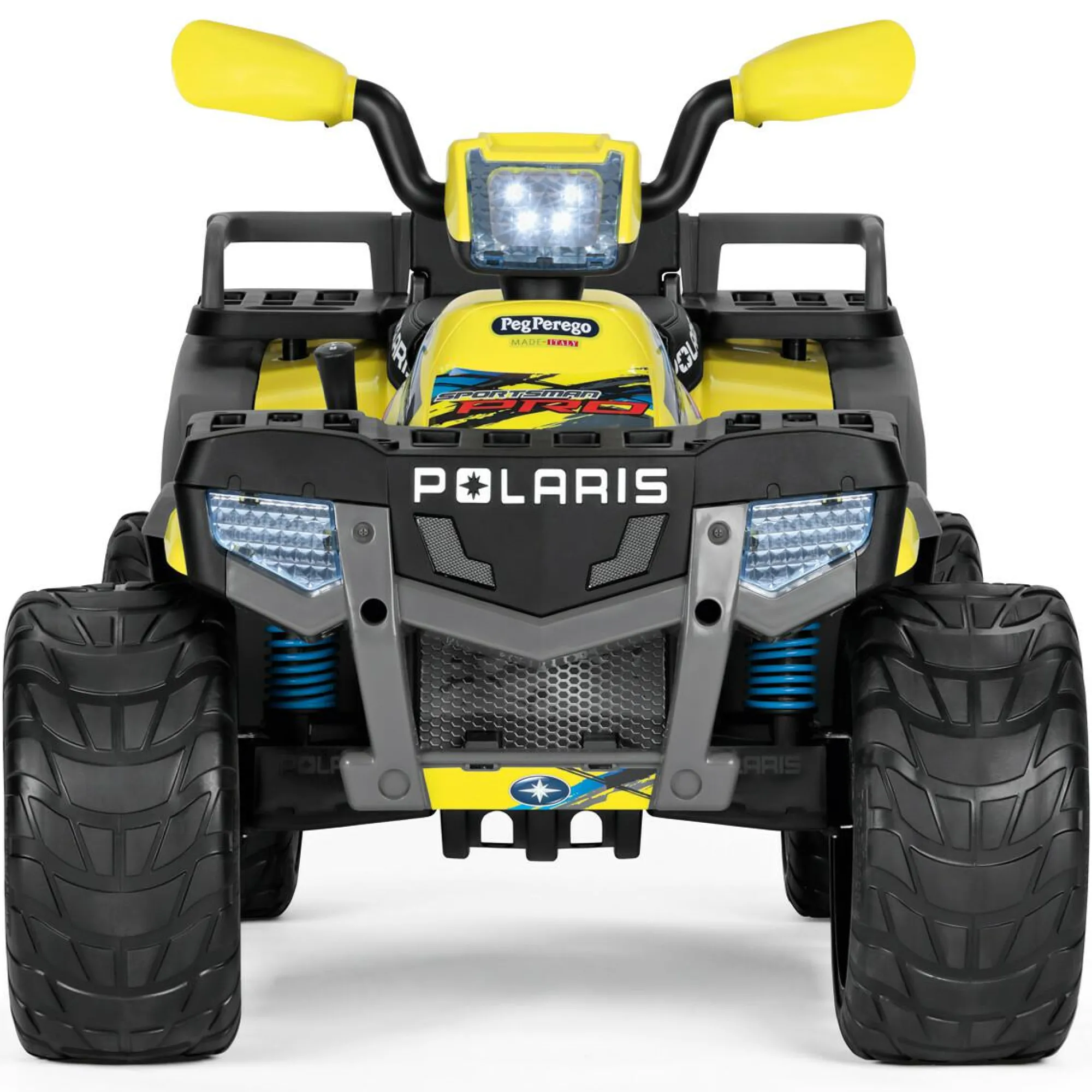 Cruscotto multifunzione dotato di pulsante Start, clacson, radio FM, attacchi per collegare lettore MP3 e chiavetta USB (non inclusi). Dotato anche di indicatore batteria scarica e sovraccarico motori per giocare alla grande senza pensieri. Vere luci LED sul grande fanale del manubrio che si accendono premendo il pulsante Start o il pedale acceleratore. Spegnimento automatico salva batteria dopo 10 minuti di inattività.