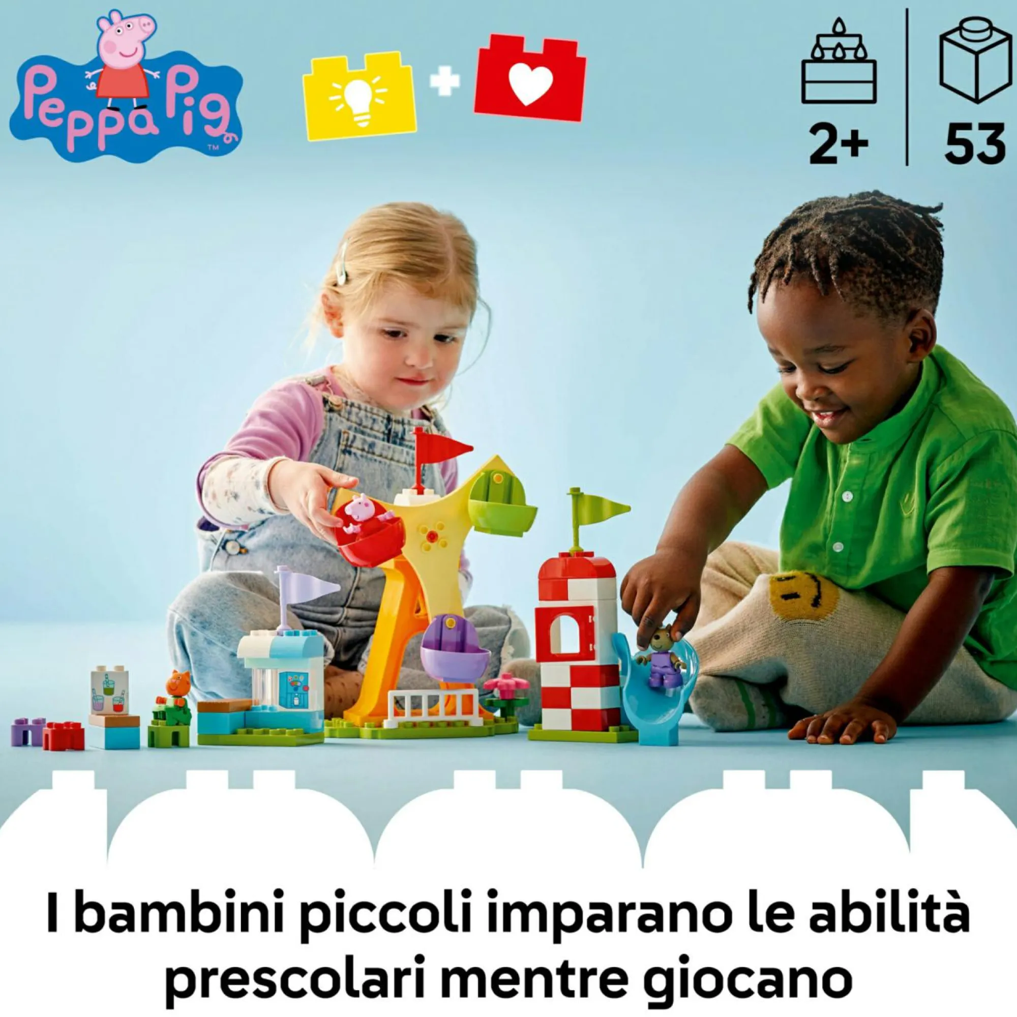Luna park giocattolo da costruire: il set di giochi didattici LEGO DUPLO Peppa Pig Luna Park, consente ai piccoli in età prescolare di imparare giocando mentre scoprono il parco dei divertimenti con i personaggi del loro programma preferito