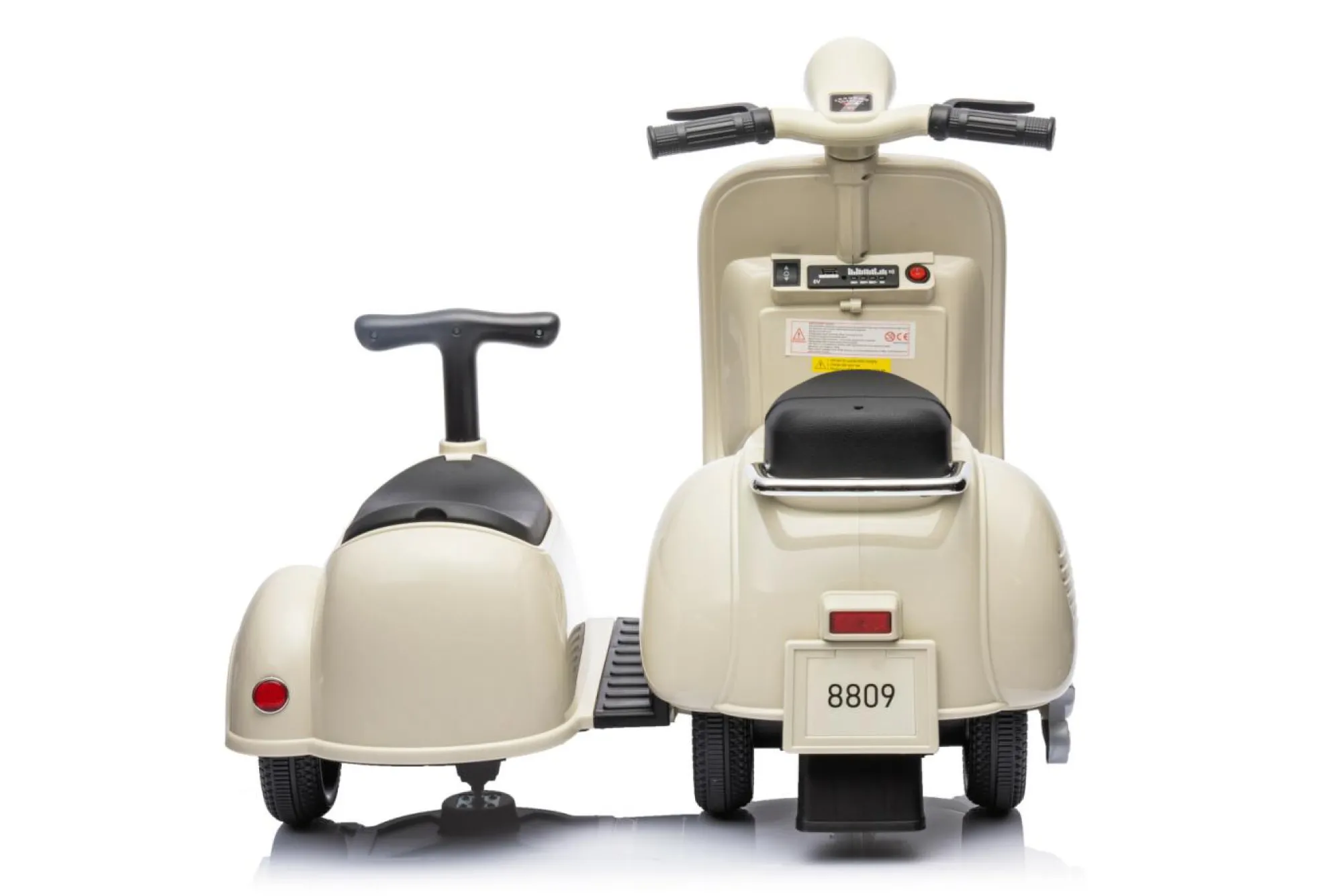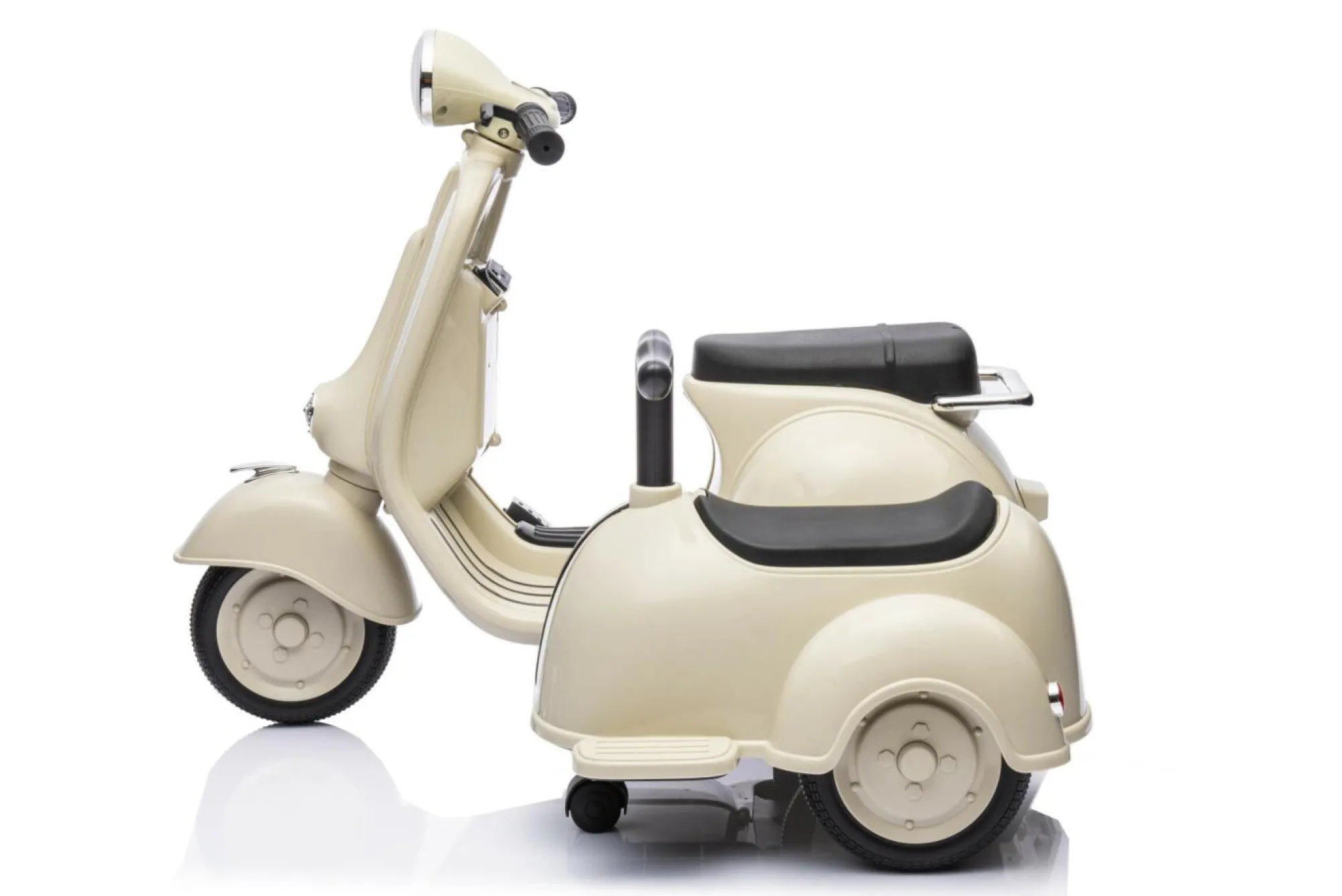 DESIGN VINTAGE: Riproduzione fedele della classica Vespa con sidecar, perfetta per creare un’esperienza unica di gioco retrò per i bambini.