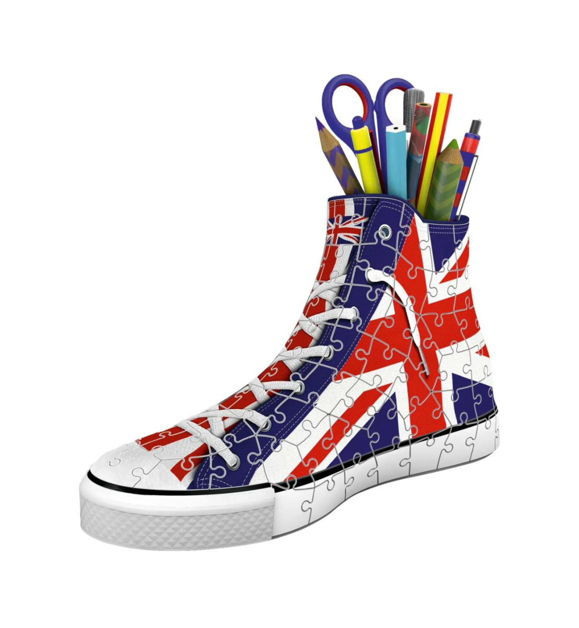 Completa il 3D Puzzle da 108 pezzi con i 4 accessori forniti nella scatola e crea un portapenne divertente, originale e funzionale per la tua scrivania!