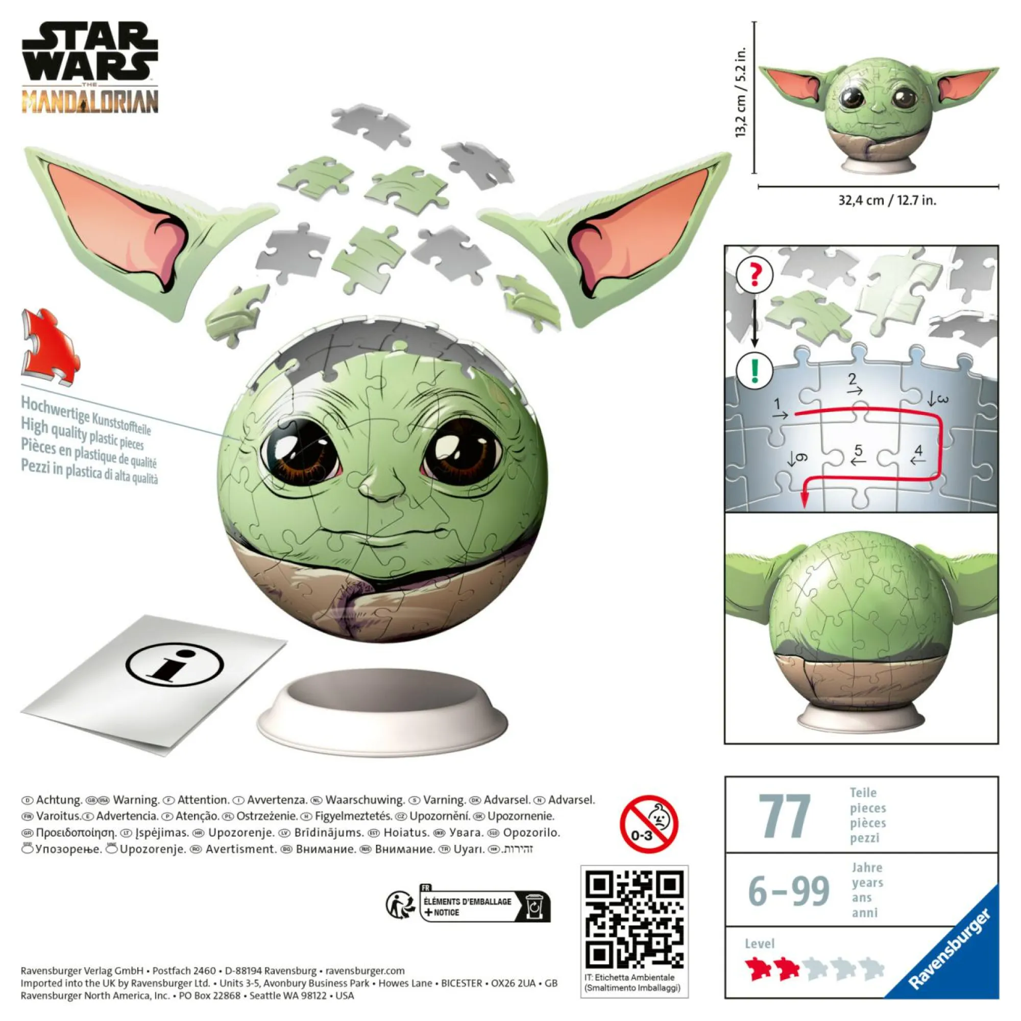 Una divertente Puzzle-Ball da 52 pezzi di solida plastica, numerati sul retro. Il prodotto, una volta moltato ha un diametro di 7,5 cm e comprende un pratico supporto per poterlo esporre.