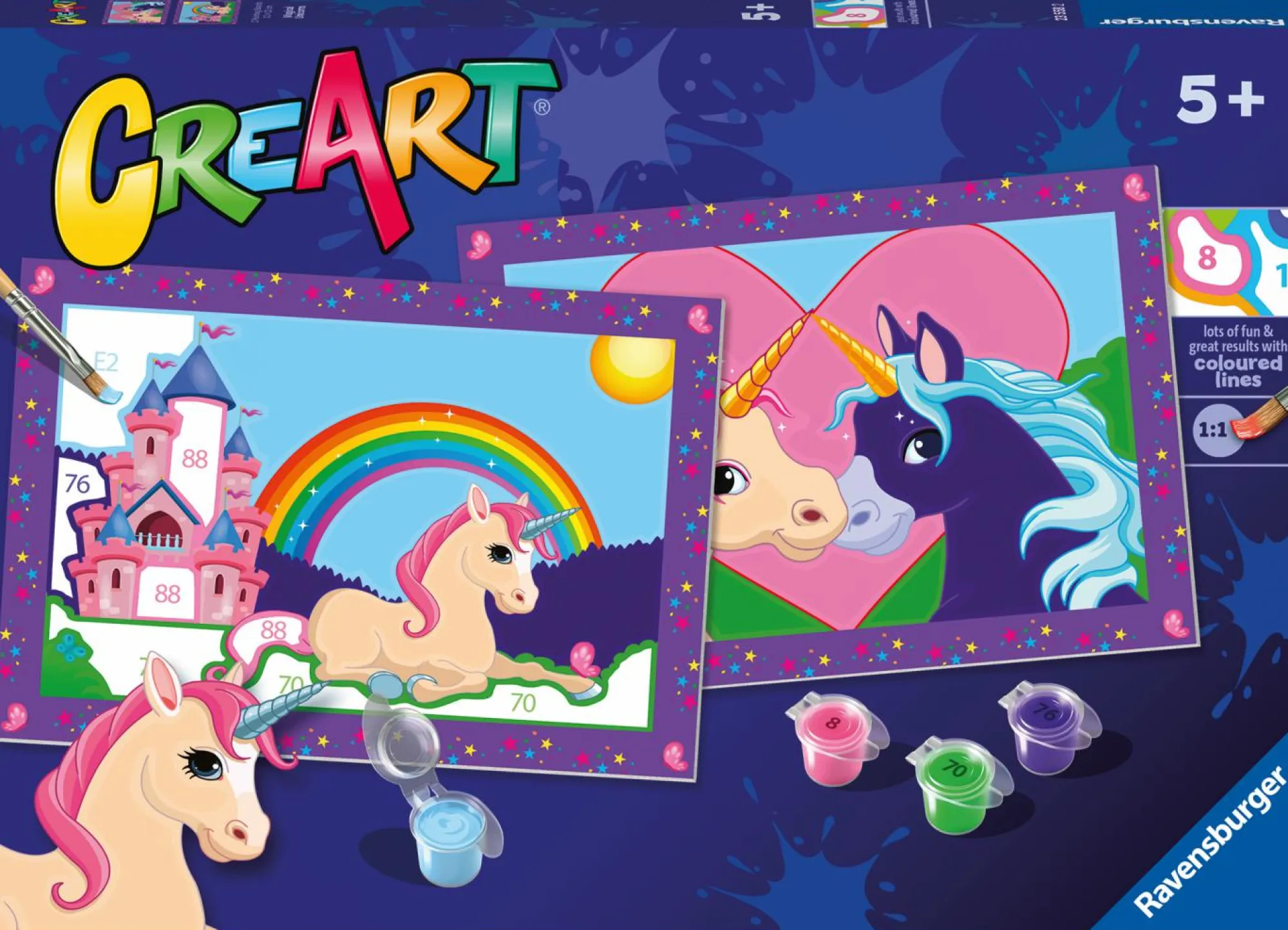 La serie Junior è l’ideale per piccoli artisti principianti dai 5 ai 7 anni. La tecnica “Dipingere con i numeri” favorisce in modo divertente la motricità fine, la concentrazione e insegna come si utilizza il pennello. Pennellata dopo pennellata, la gioia nel ammirare la propria piccola opera d’arte cresce sempre di più.