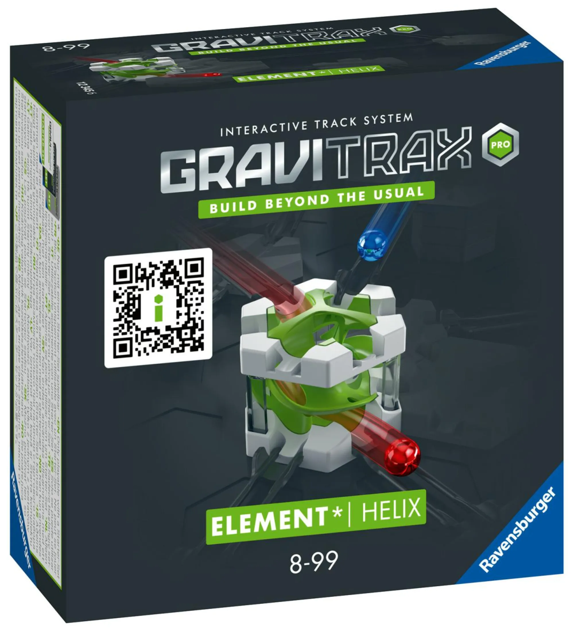 Helix presenta scivoli incrociati che danno sospensione ai percorsi di sfere GraviTrax. Con le sue tre opzioni di uscita, questo blocco d’azione GraviTrax PRO offre più possibilità, più sfida e più creatività!