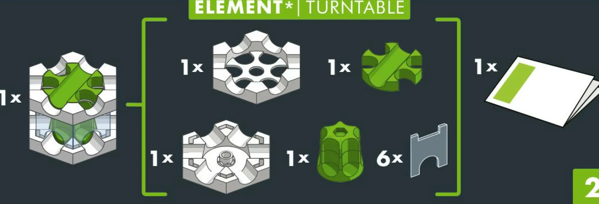 La rotazione di questo accessorio consentirà alla biglia di continuare il proprio percorso sullo stesso livello oppure su quello inferiore