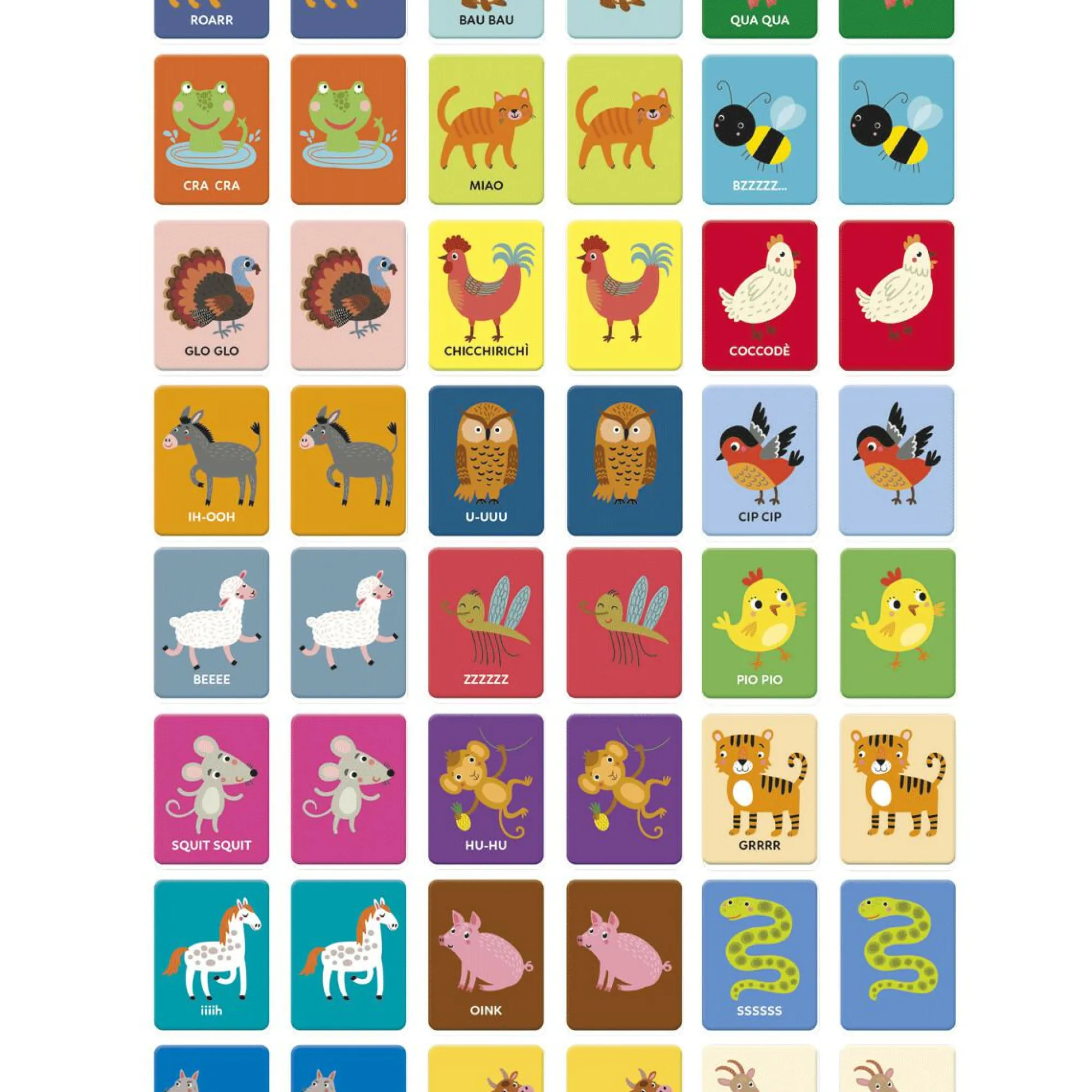 Il bambino potrà riconoscere e riprodurre il verso degli animali, associando le coppie uguali