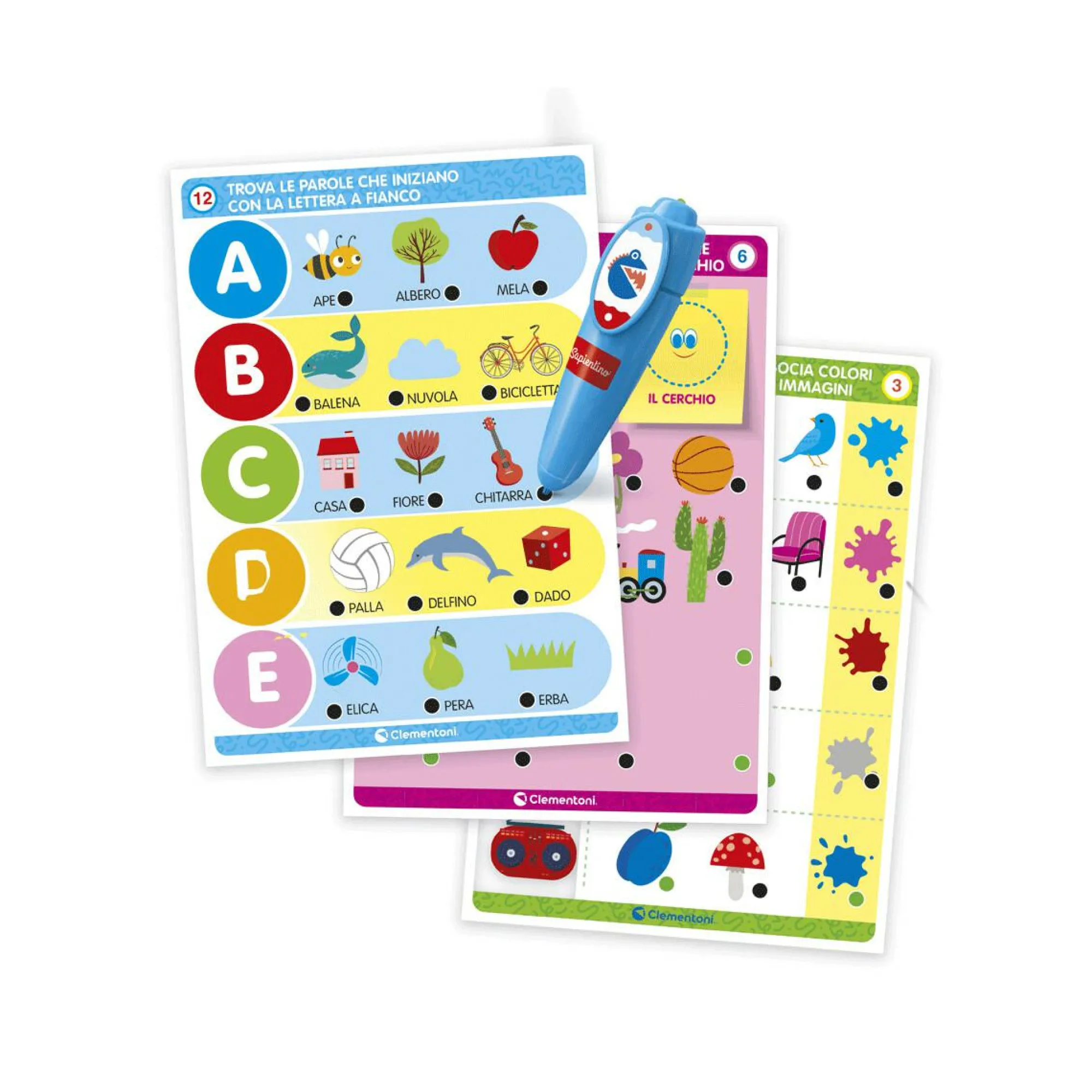 Con la penna interattiva si potranno risolvere tanti quiz a tema forme, colori, alfabeto, numeri