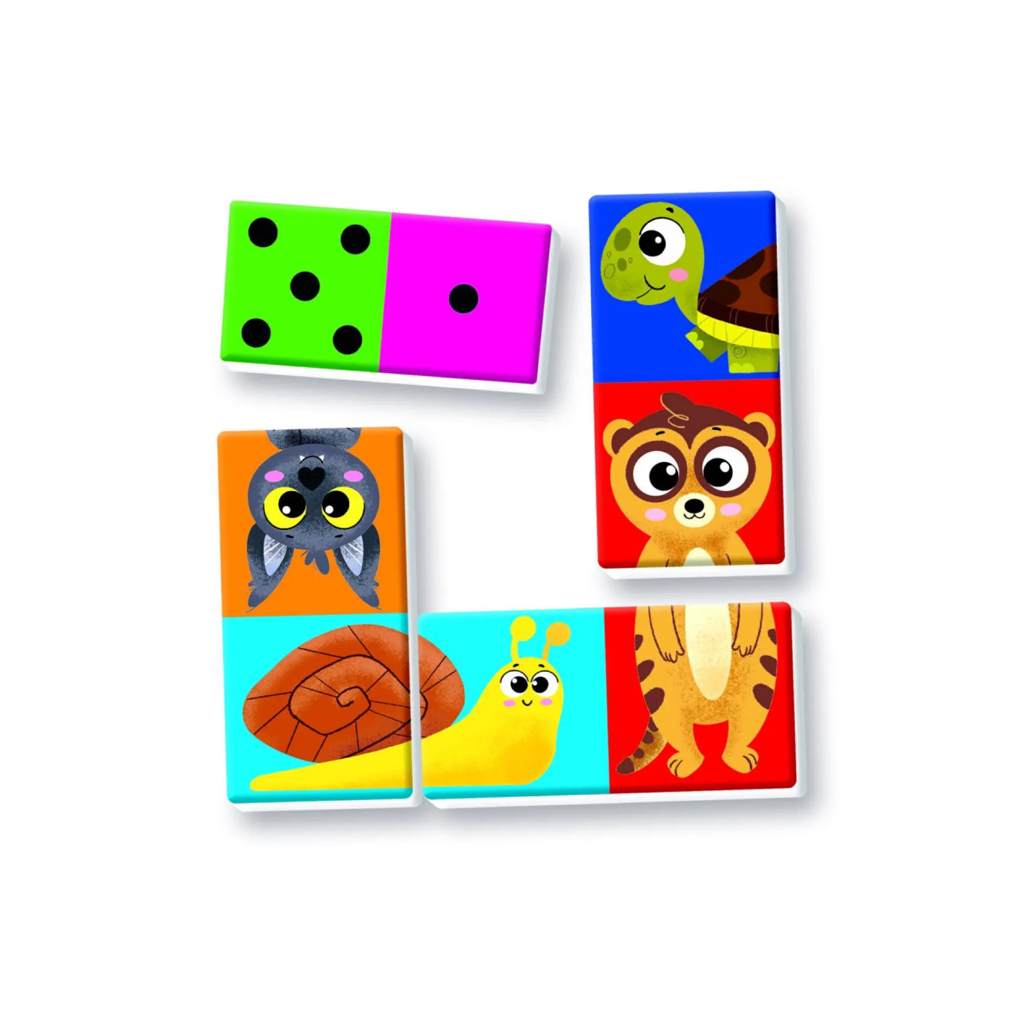 Include 24 tessere fronte-retro per conoscere animali e numeri.