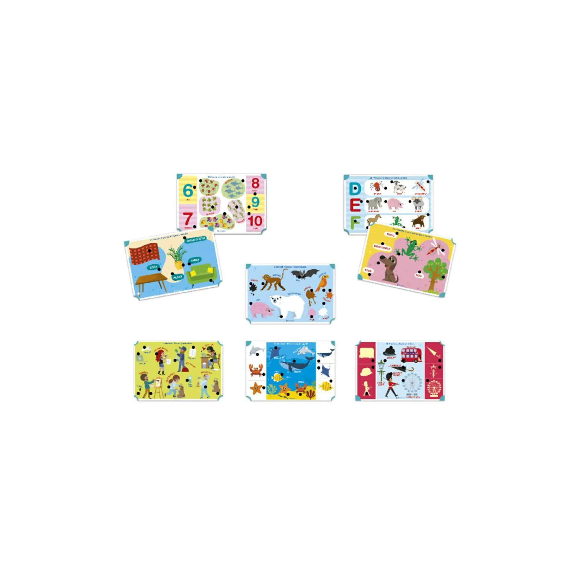 Contiene 16 schede educative con 32 attività e tanti quiz che il bambino potrà risolvere associando i diversi elementi con gli spinotti.