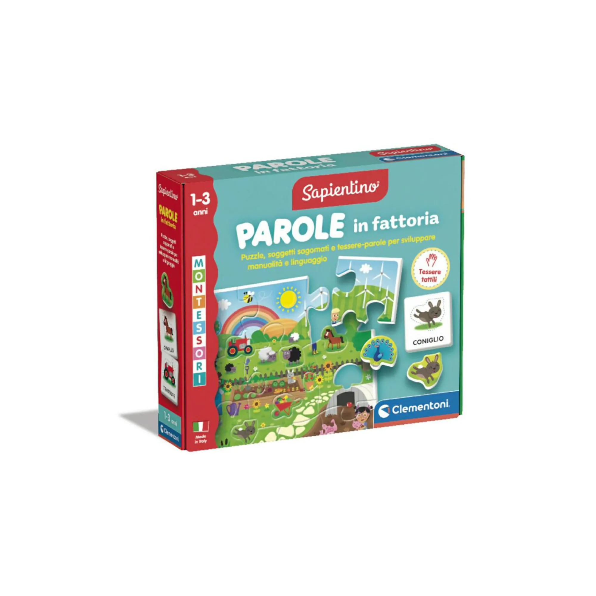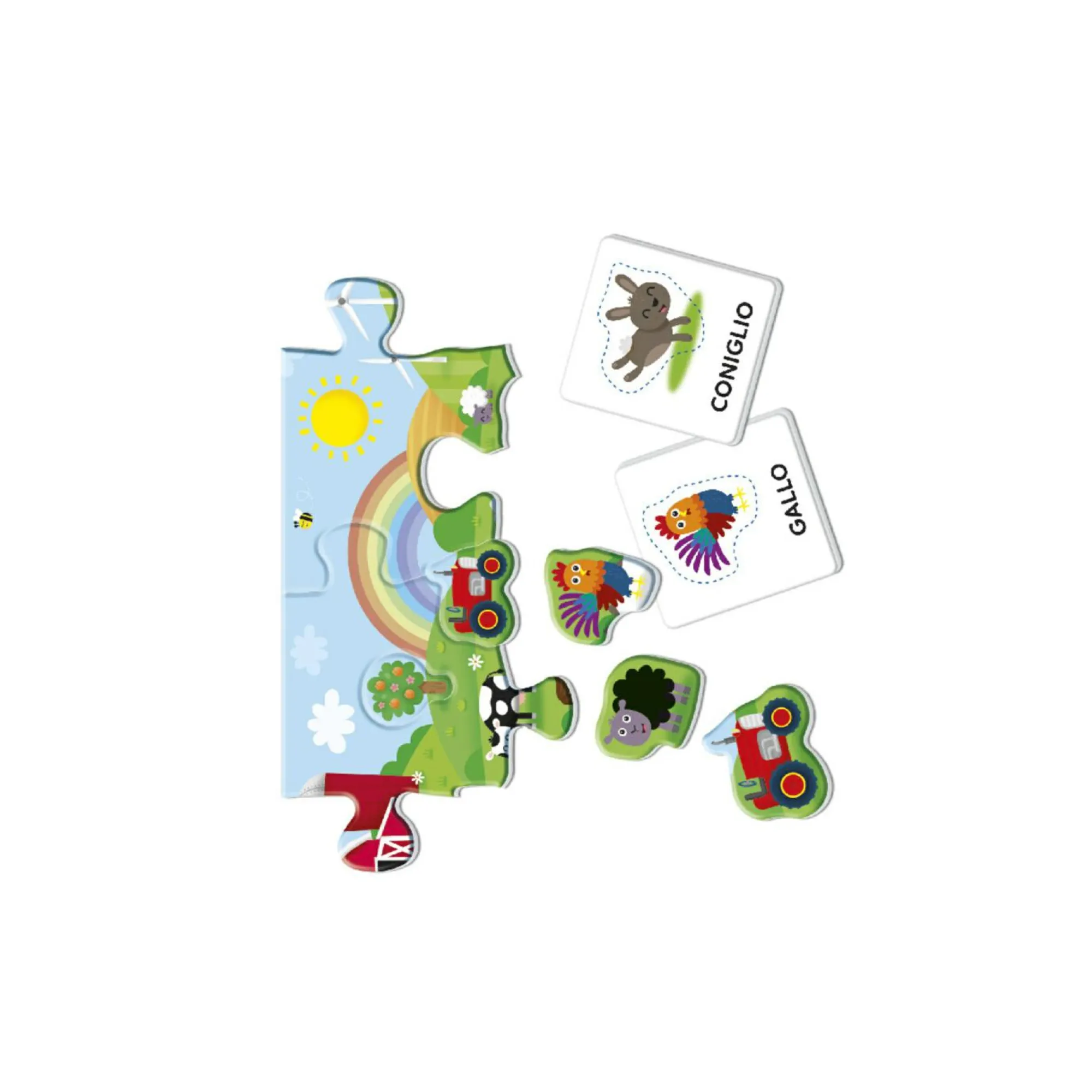 Oltre ai grandi pezzi da incastrare, il puzzle contiene anche gli animali della fattoria sagomati.
