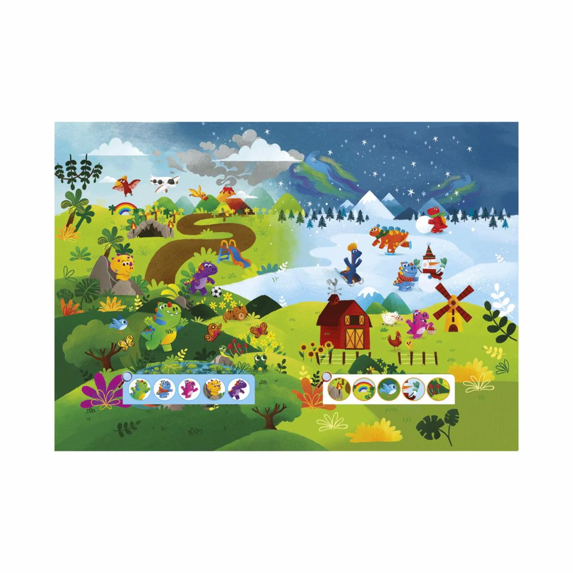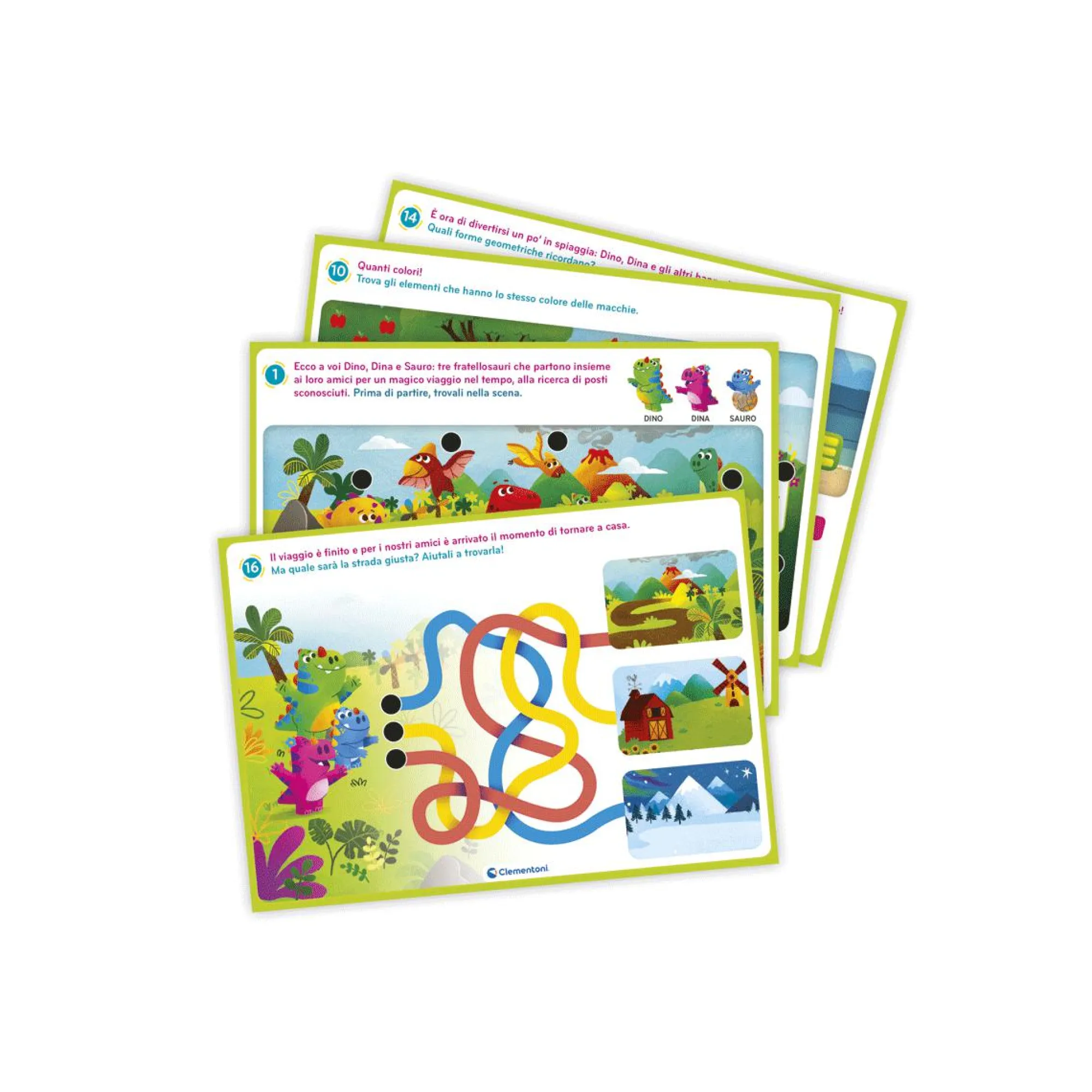 8 schede educative per giocare con la simpatica penna interattiva per risolvere i quiz.