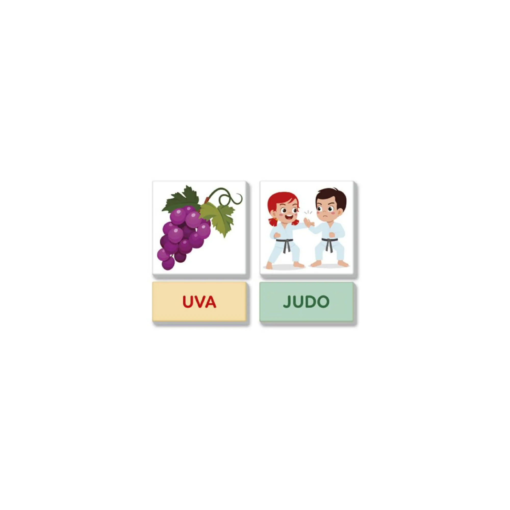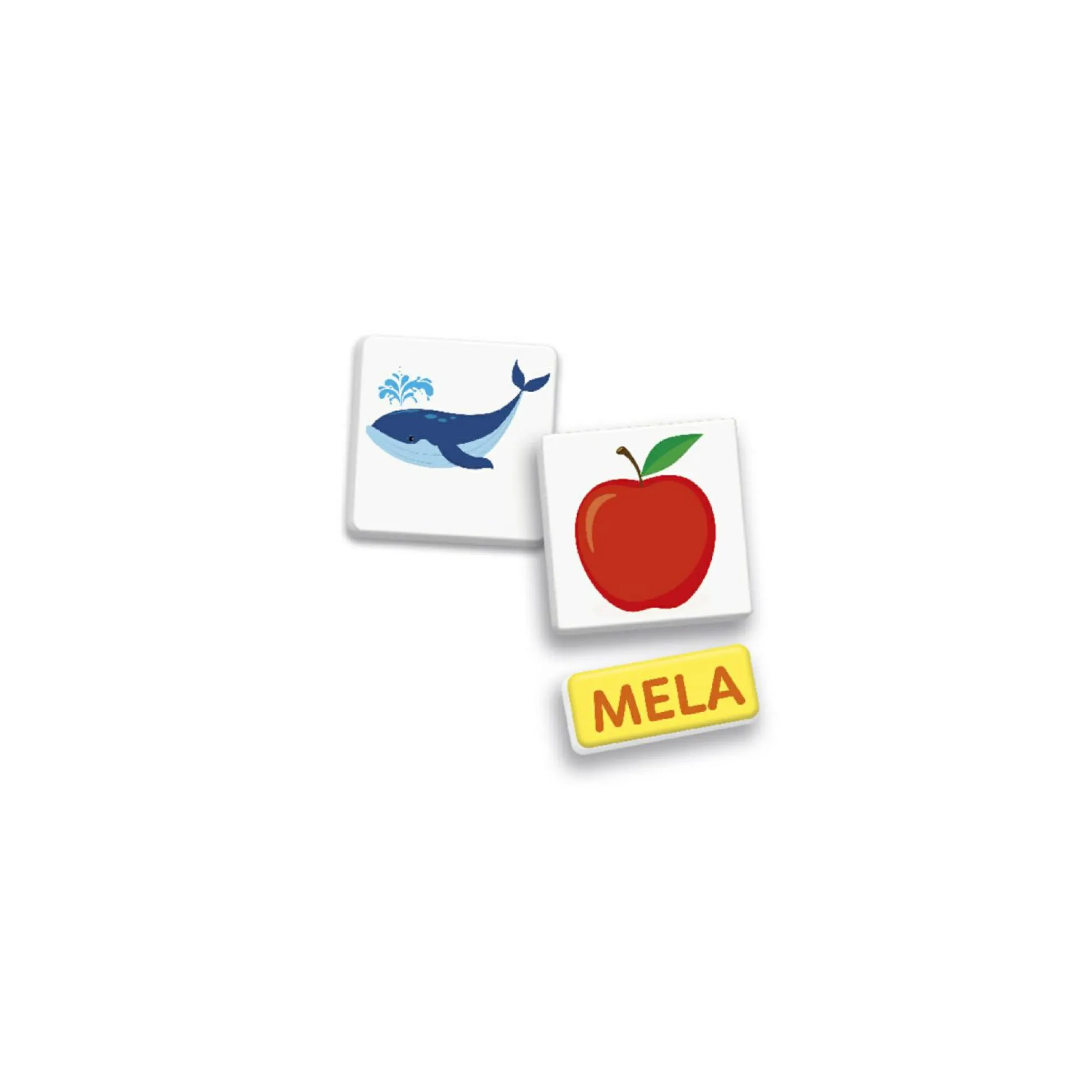 Consente 3 modalità di gioco: la composizione di parole, la scrittura sulla lavagna-compositoio e la lettura con l’associazione tra immagini e parole.