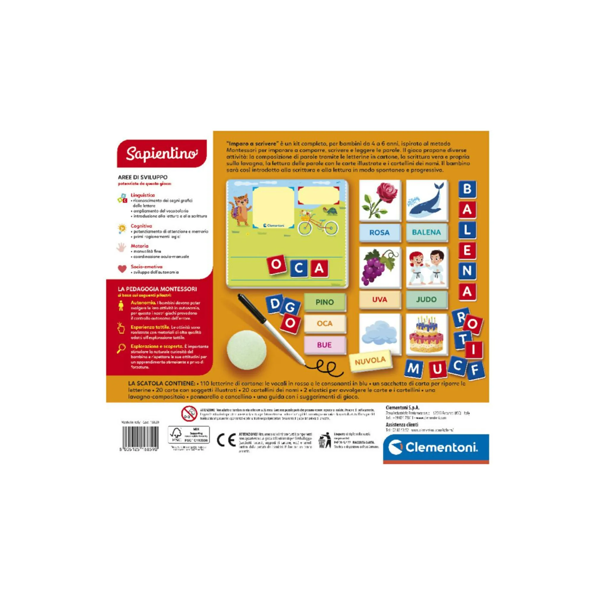 Un kit completo ispirato al metodo Montessori per imparare a comporre e scrivere le prime parole.
