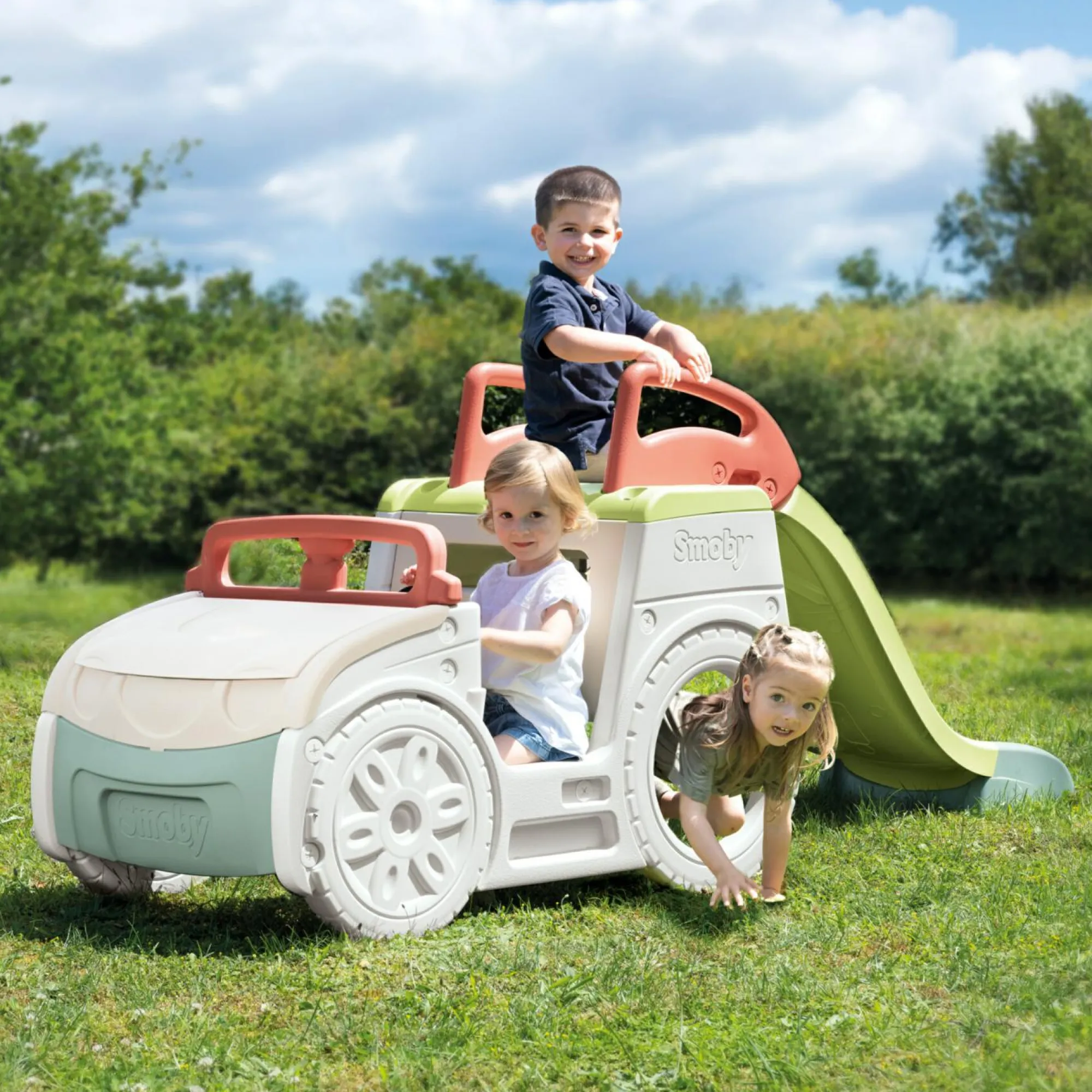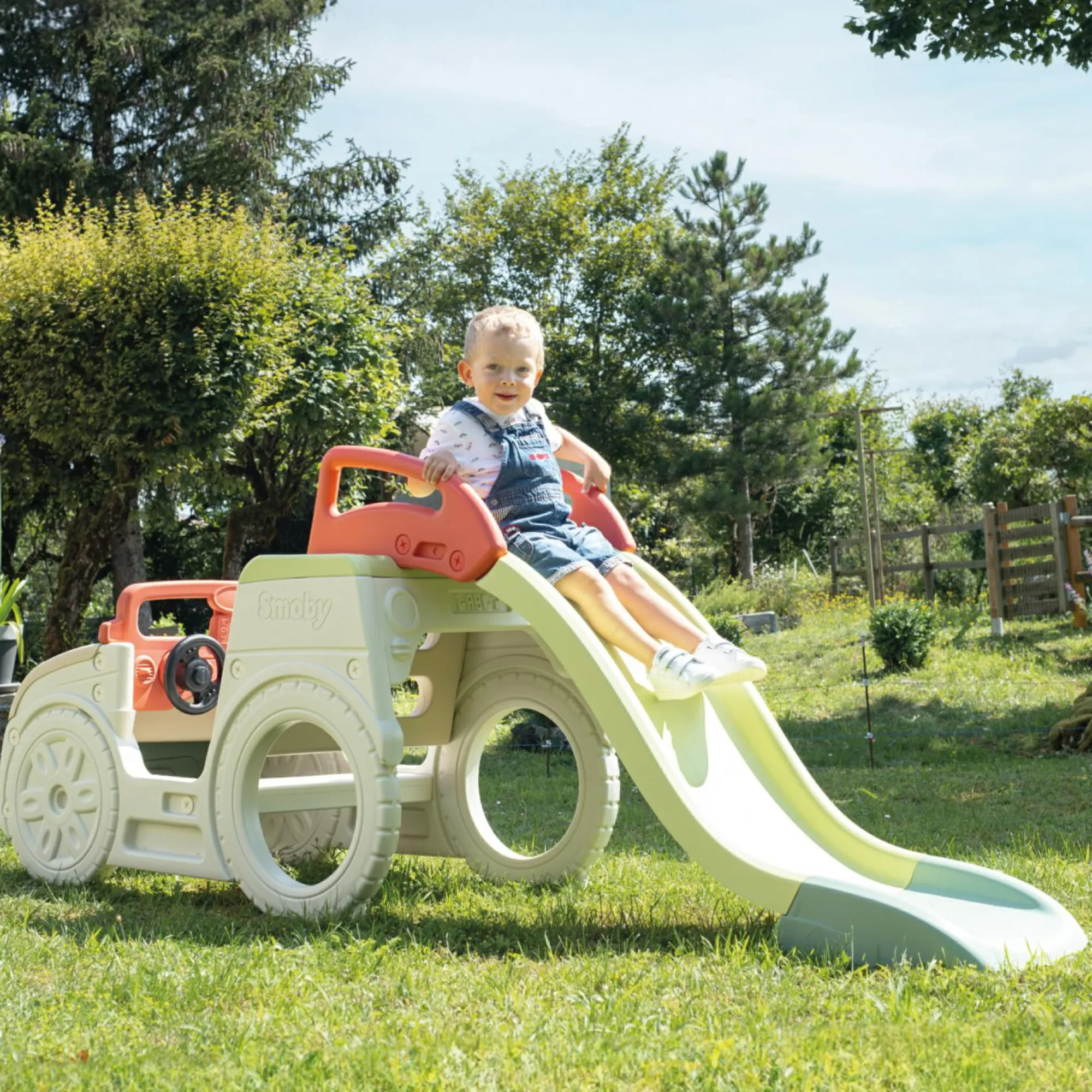 Scivolo da 1,50 m con scaletta ergonomica, gradini antiscivolo e possibilità di cascata d’acqua.
