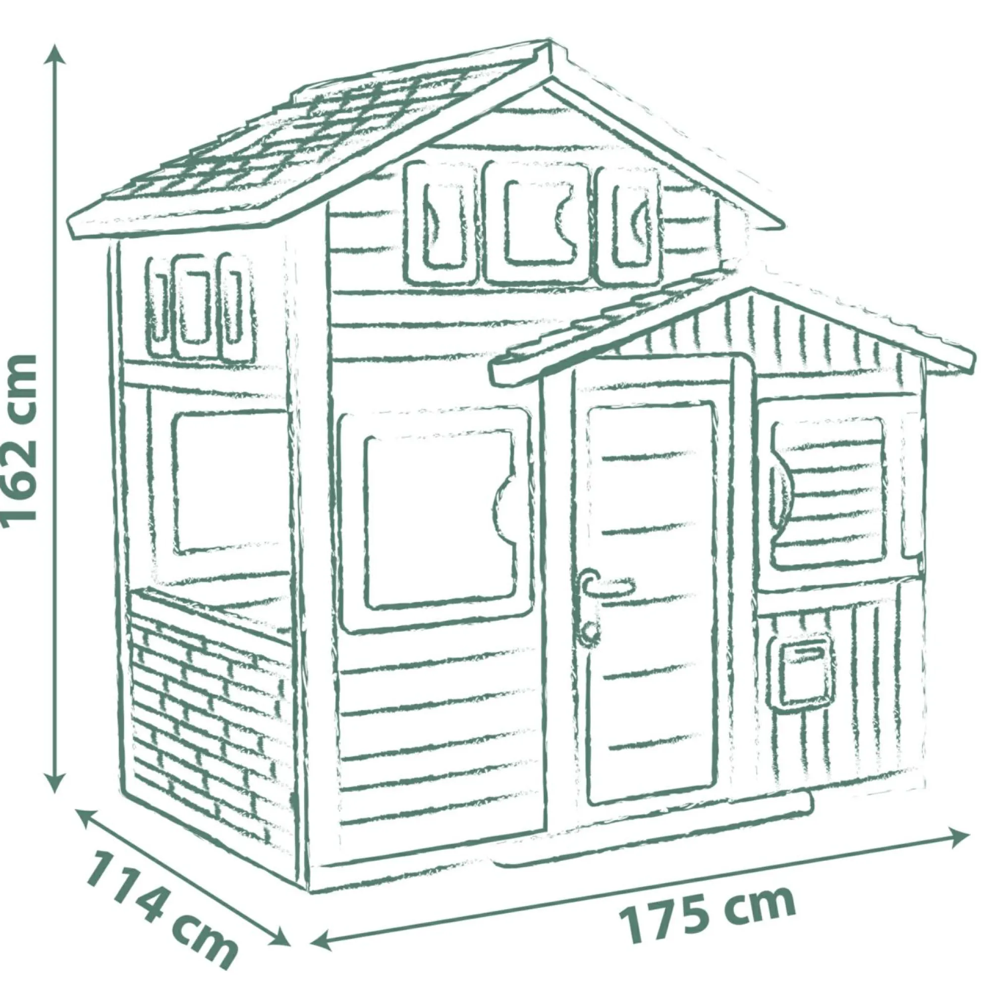 Ampio spazio e design moderno: Casetta alta 160 cm con finestre e dettagli realistici per un gioco coinvolgente.