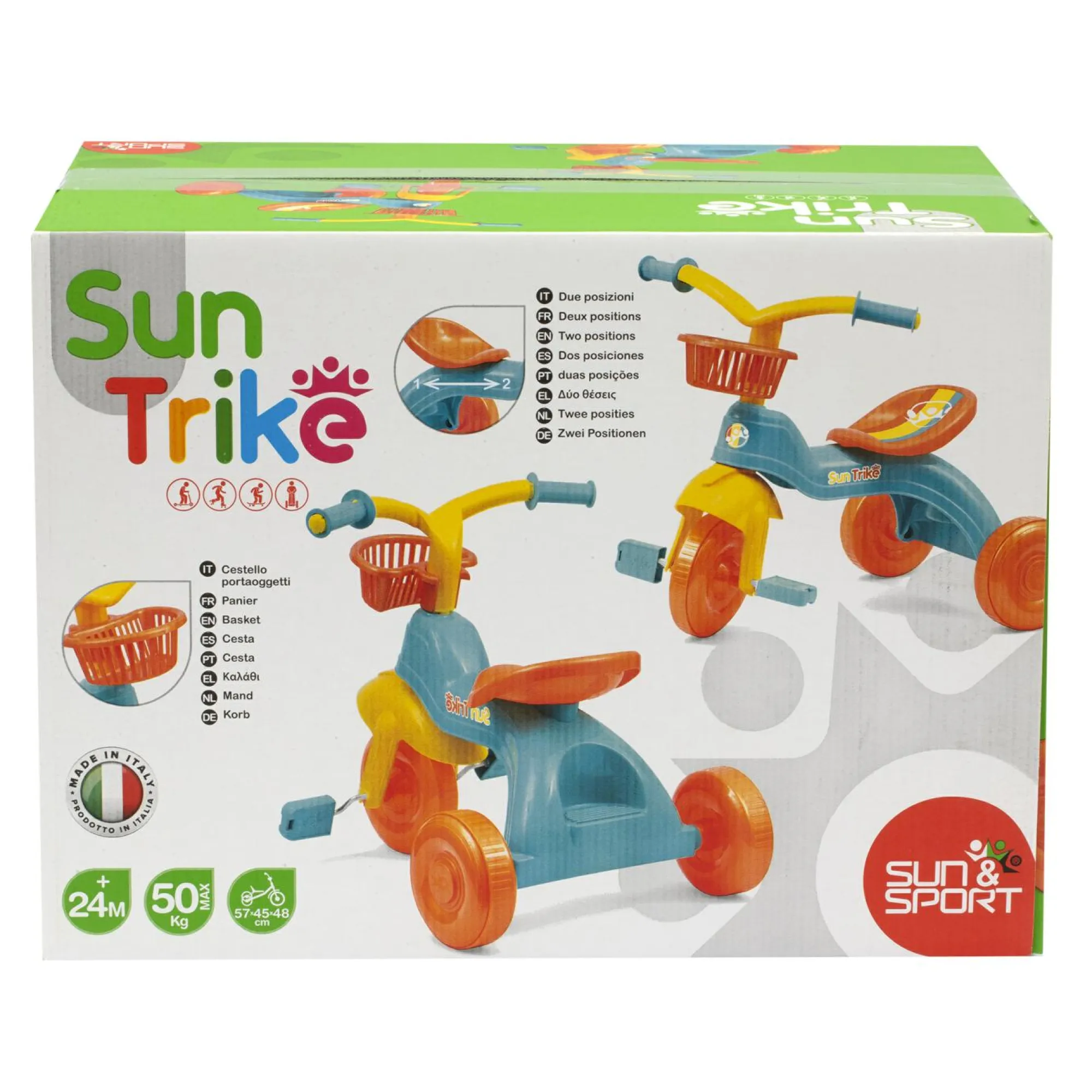 Esplora con stile: Il triciclo FUN TRIKE TOMBOLI offre colori vivaci, seggioli regolabile e un pratico cesti!