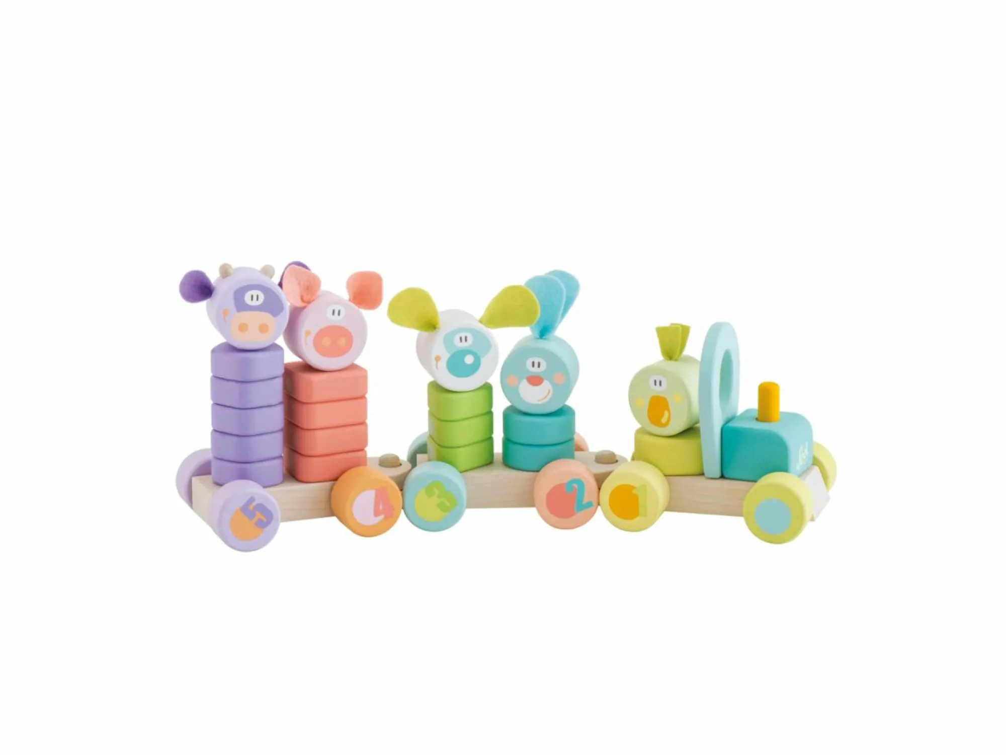 Ciuf ciuuuuuf!!!E’ in arrivo un trenino carico di animaletti! Il simpatico capotreno ti condurra’ di stazione in stazione per caricare i passeggeri e impilarli nei vagoncini…con tante forme diverse e un riferimento numerico per stimolare la manualità del tuo bimbo e l’apprendimento dei primi concetti logici matematici!