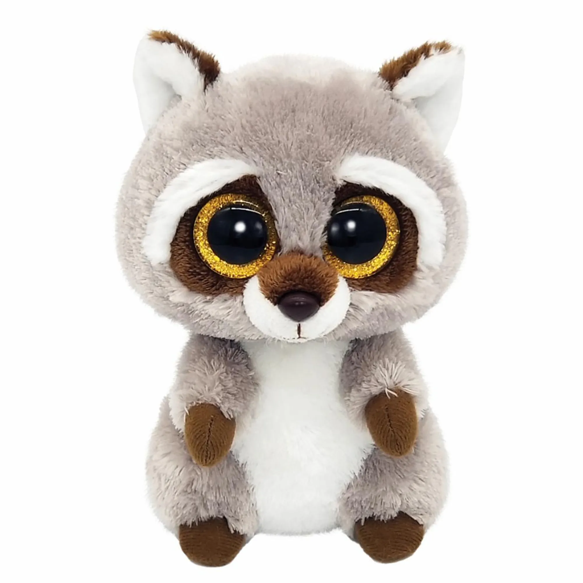 Un bellissimo animale di peluche TY Beanie Boos a forma di procione. Colore: grigio e marrone. Con grandi occhi glitter dorati!